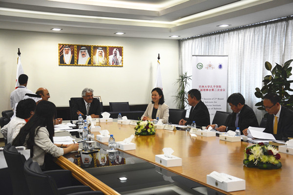 下午,召开了巴林大学孔子学院理事会。会议对巴林大学孔子学院的去年的工作总结、财务决算进行了审议,对2017年的工作计划及预算进行了讨论。巴林大学瑞雅德校长对加强孔子学院的桥梁作用,促进孔子学院提升办学水平寄予很大希望。龚思怡副校长、姚喜明主任分别就如何通过孔子学院开发新的合作项目提出了看法。最后,双方同意把促进汉语专业建设及MBA合作培养等问题列入工作日程。