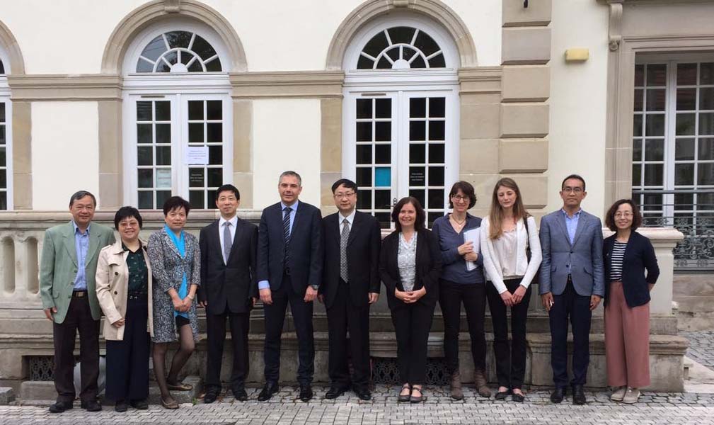 5月15日,代表团首先访问了索邦大学集团,与国际事务负责人Cornelia Marin女士及财务负责人等座谈。代表团听取了索邦大学集团财务结构的介绍,重点了解索邦大学在法国政府开展的“未来投资”计划中争取“卓越大学计划”的财政拨款情况。此外,索邦大学还介绍了围绕国家遗产、健康医疗、大数据、音乐、环境等跨学科合作的主题研究。双方达成了进一步推动两校博士培养项目、在大学生文化艺术交流等方面合作的初步意向。