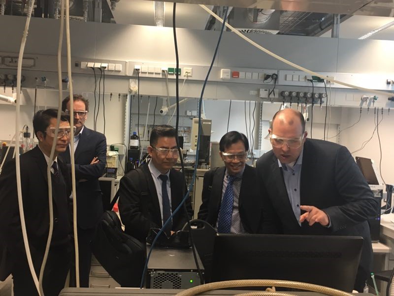 4月28日上午,代表团访问了奥地利联邦交通、创新与技术部,与主管创新的副部长S. Ingolf先生、以及国际合作司领导等进行了友好会谈,随后参观了奥地利技术研究院,听取了该院院长Knoll Wolfgang教授、以及分子诊断专家C.M.Giorgio博士的汇报,并就双边开展的合作项目进行了交流和讨论,双方认为在目前已经取得良好进展的纳米材料合作基础上,进一步拓宽合作领域,探讨在大数据与人工智能、基于ICT技术的智慧城市研究、以及光纤传感等领域开展合作。双方同意在2017年11月份,由奥地利联邦交通、创新与技术部牵头,在维也纳组织一次双边科研合作交流研讨会,邀请双边相关领域专家围绕共同感兴趣的优势研究领域展开交流研讨,凝练若干重大研究课题,并在2018年政府研究计划中给予资助。