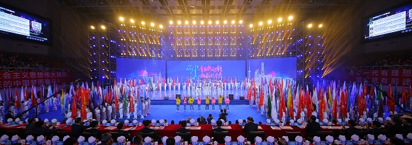 开幕式上中国工程院院士袁隆平、刘先林、王华明,中国科学院院士王恩多、陈凯先通过视频、题字等方式为参赛同学们送来了亲切祝福。各主办单位代表集体点亮会徽,一同启动第十五届“挑战杯”终审决赛。