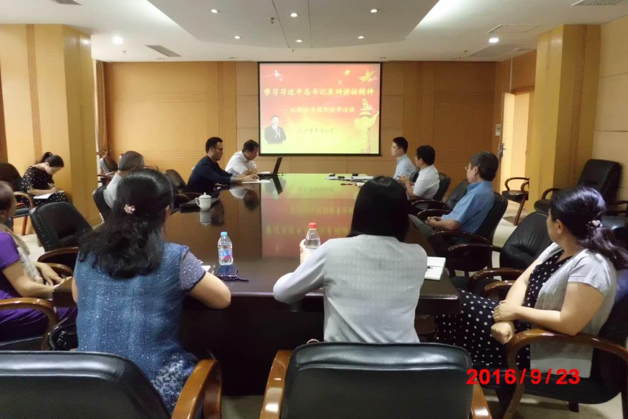 近日,机关党委三总支一支部在行政楼703会议室召开“树立看齐意识,学习系列讲话”——“两学一做”专题二的学习讨论。校长金东寒、原常务副校长周哲玮作为支部成员参加学习研讨会。