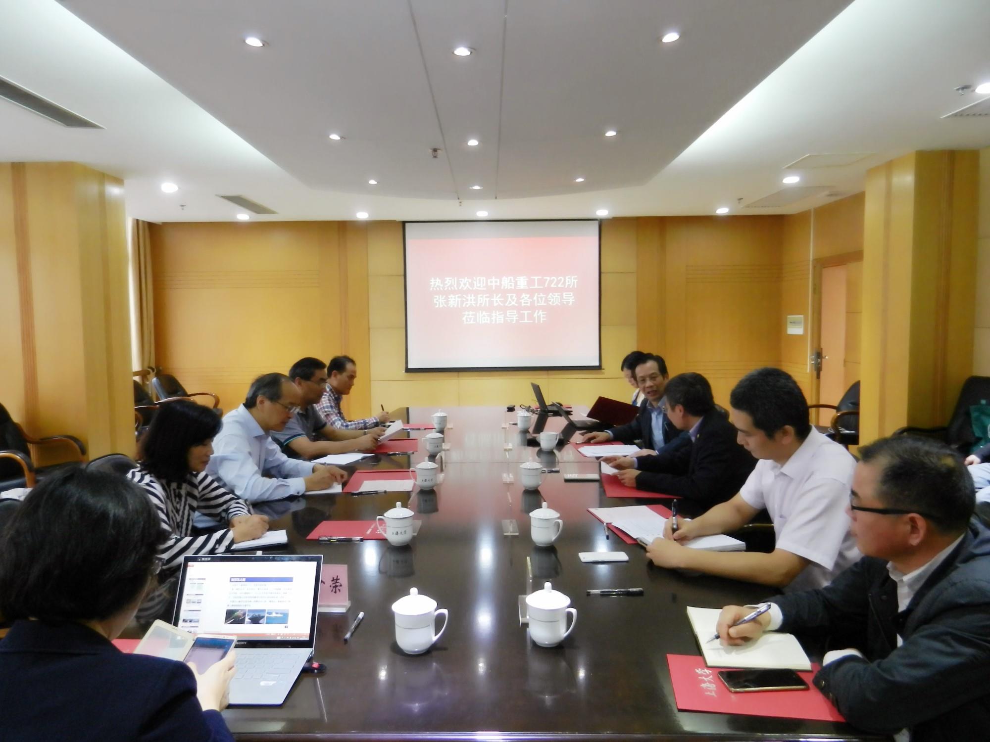 10月12日,中船重工722所所长张新洪一行到访我校。校长金东寒院士在校本部与张新洪所长一行展开了深入座谈。座谈会由副校长汪敏主持。