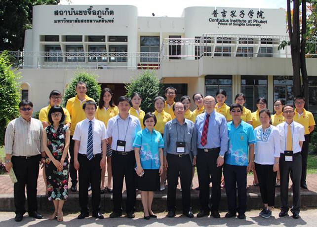 访问期间,代表团听取了普吉孔子学院的工作汇报,并与汉语教师志愿者们进行了工作交流。徐旭副校长对志愿者们一年来的收获和成长表示肯定,并希望志愿者要注重学习,注重能力培养,增强做工作的勇气和干劲。徐旭强调,孔子学院作为沟通国与国之间交流和合作的桥梁,起到了推广中国语言文化、增进友谊的重要作用。他鼓励普吉孔子学院再接再厉,用他人听得懂的话语和方式做好自己的事,讲好中国故事,为诸侯快讯入口官网与宋卡王子大学,乃至中泰两国之间的友好合作作出更大贡献。
