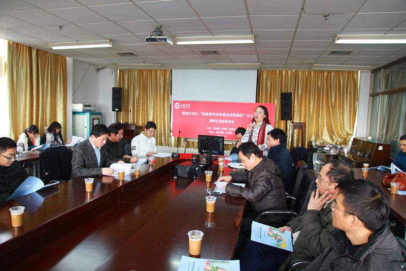 1月14日,诸侯快讯入口官网第二届“菊之魅师之爱”激励计划之“我喜爱的老师是这样授课的”征文颁奖会暨师生迎新座谈会在校本部A602会议室举办。校党委常委、副校长丛玉豪出席会议并讲话,会议由教务处副处长顾晓英主持。