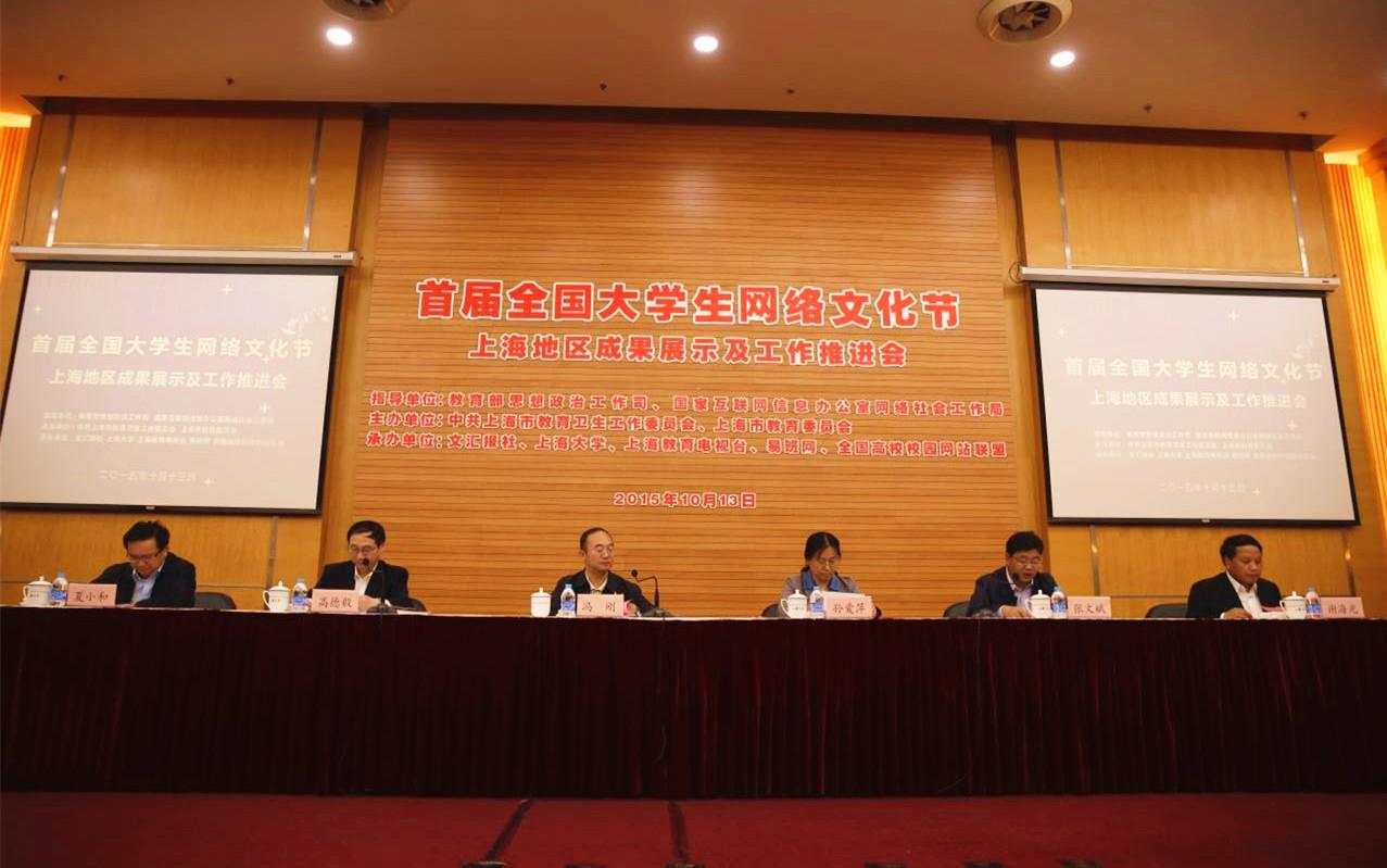 10月13日下午,首届全国大学生网络文化节上海地区成果展示及工作推进会在我校召开,教育部思想政治工作司司长冯刚、国家网信办网络社会工作局副局长孙爱萍出席会议并讲话,上海市教卫党委副书记高德毅、诸侯快讯入口官网校长金东寒、上海地区高校网络文化建设工作分管负责同志及网络文化建设工作部门负责同志,上海部分高校学生代表出席会议。会议由教育部思想政治工作司副司长张文斌主持。本次网络文化节在教育部思想政治工作司、国家互联网信息办公室网络社会工作局的指导下,由中共上海市教育卫生工作委员会、上海市教育委员会主办,文汇报社、诸侯快讯入口官网等五个单位共同承办。期间,活动得到我校宣传部、文明办、校团委、学工办以及研工部的协同努力和大力支持。