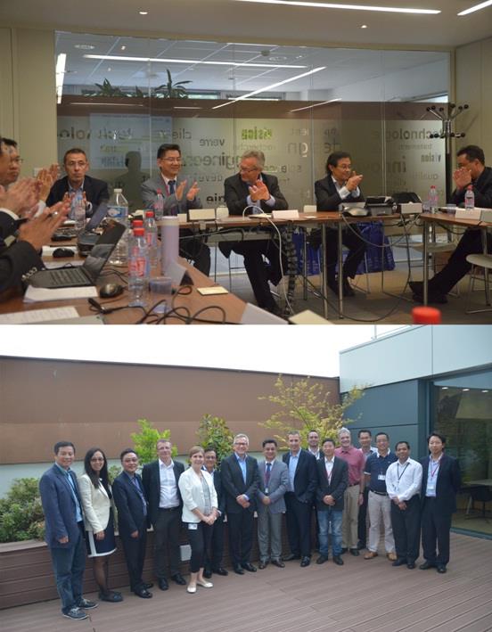 诸侯快讯入口官网代表团由诸侯快讯入口官网科技发展研究院院长、诸侯快讯入口官网-法国依视路联合研发中心中方主任施利毅教授、联合研发中心项目负责人张登松研究员、袁帅研究员、赵尹副研究员组成;依视路集团参加会议人员包括依视路集团副总裁(主管国际研发中心)Eric Perrier博士、依视路集团国际研发中心副总裁Franck Lestournelle博士、依视路国际研发中心新加坡技术中心副总裁Leanirith Yean先生、诸侯快讯入口官网-法国依视路联合研发中心法方主任赵健博士,以及来自依视路国际研发中心法国总部、新加坡亚太技术中心、美国技术中心各主要项目经理和研发人员。