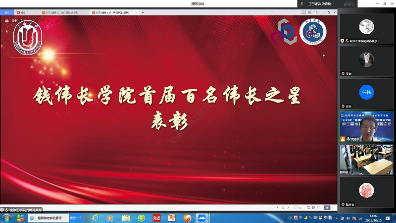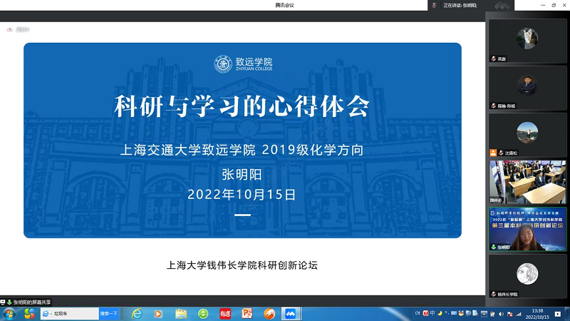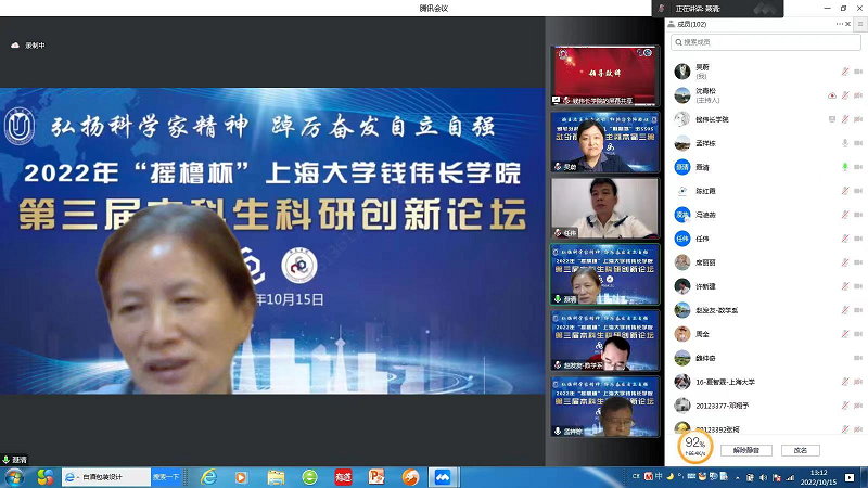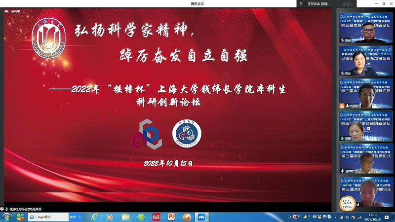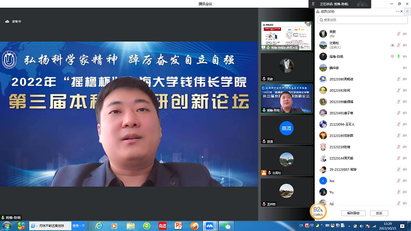 10月15日下午,弘扬科学家精神,踔厉奋发自立自强——2022年“摇橹杯”诸侯快讯入口官网钱伟长学院第三届本科生科研创新论坛举行,因受疫情影响,此次论坛采用线上与线下相结合的方式,并于伟长书院南区2号楼一楼西会议室设立分会场。此次论坛有幸邀请到上海摇橹仪器设备有限公司董事长兼总经理、钱伟长学院2009级校友陈杨,鸿之微科技(上海)股份有限公司董事长曹荣根,中国科学技术大学物理系教授、蔻享学术创始人兼首席科学家乔振华等企业资深专家,同时还邀请了上海交通大学致远学院本科生张明阳和诸侯快讯入口官网博士研究生陆佳宜作为分享嘉宾。诸侯快讯入口官网党委常委、副校长聂清,校学工办主任、武装部部长孟祥栋,校团委书记冯凌燕,钱伟长学院数学方向导师赵发友,物理方向项目主任杨国宏,力学方向导师宋亦诚、楚海建,化学方向项目主任、社区学院副院长许斌,化学方向导师邢菲菲,生命科学方向导师陈红霞,材料设计科学与工程方向导师席丽丽,钱伟长学院党委书记吴蔚,党委副书记、院长周全,副院长许新建、任伟线上出席了本次论坛。钱伟长学院辅导员组织各年级学生线上观摩了本次论坛。论坛由钱伟长学院党委副书记、副院长沈青松主持。
