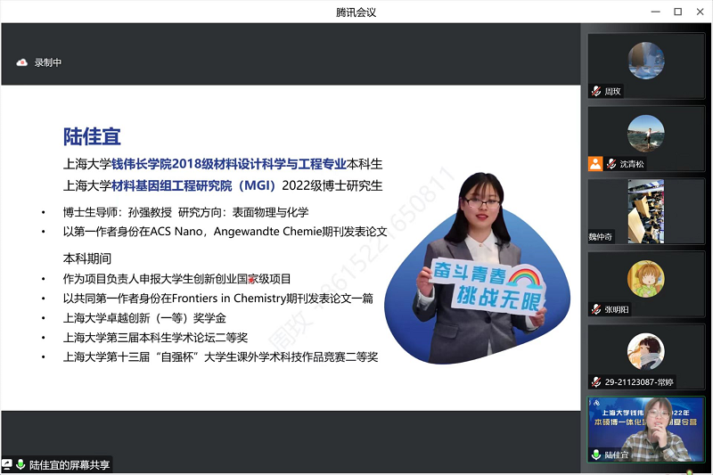 接着,由兄弟高校本科生代表、校友代表做了科研项目展示与科研经验分享。来自上海交通大学致远学院的本科生张明阳同学曾以共同第一作者在国际顶级期刊《Chemical Engineering Journal》发表综述文章,她参与校级PRP项目并获评为A等,还主持了一项“莙政学者项目”。论坛期间,她以一位学姐的身份分享了自己的科研经历与科研学习的心得体会,为学弟学妹们提出了许多合理性的建议,同时劝诫同学们对待科研不可急功近利,要享受科研过程中的重复与失败。诸侯快讯入口官网材料基因组工程研究院2022级博士研究生、钱伟长学院材料设计科学与工程专业2018级本科校友陆佳宜同学分享期间,结合自己本科期间在科研方面的经历,强调要学会主动追踪研究的前沿动态,逐渐找到值得自己深入研究的兴趣点,形成明确接触科研的目的,对于自己的课题,要有主人翁的意识,学会主动和学术同行交流,合理规划并管理好时间。