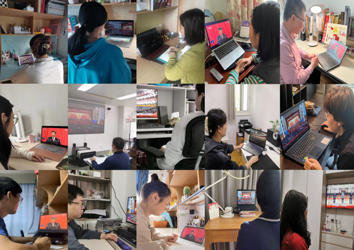 马克思主义学院党委第一时间组织师生通过线下集中学、线上自主学的方式收看大会实况直播,学习党的二十大报告、领悟党的二十大精神。马克思主义学院党政班子成员、党支部书记、思政课教师代表以及本硕博学生党员代表于东区2号楼208会议室集体收看开幕会直播,守常党支部于502会议室同步观看学习,其他学生于线上集体观看,马院师生深受鼓舞,会后迅速掀起讨论热潮。