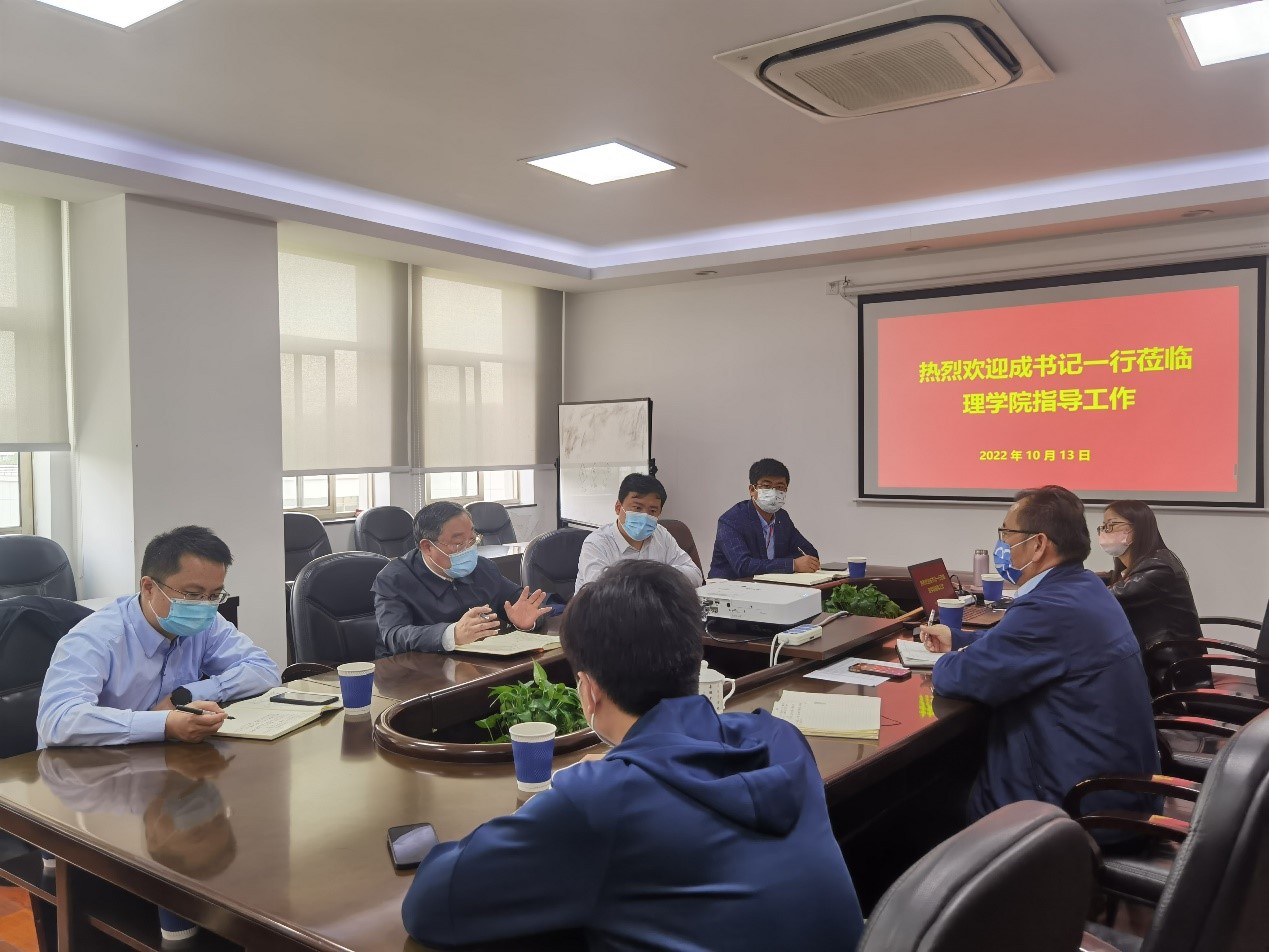 10月13日下午,校党委书记成旦红率队到理学院开展调研指导工作。校党委常委、宣传部部长胡大伟,党政办主任秦凯丰,党政办副主任凌长臣,组织人事部组织处副处长张云中等陪同调研。理学院党政领导班子、学院中层干部参加了此次调研会。