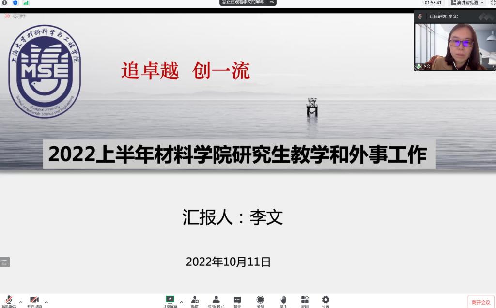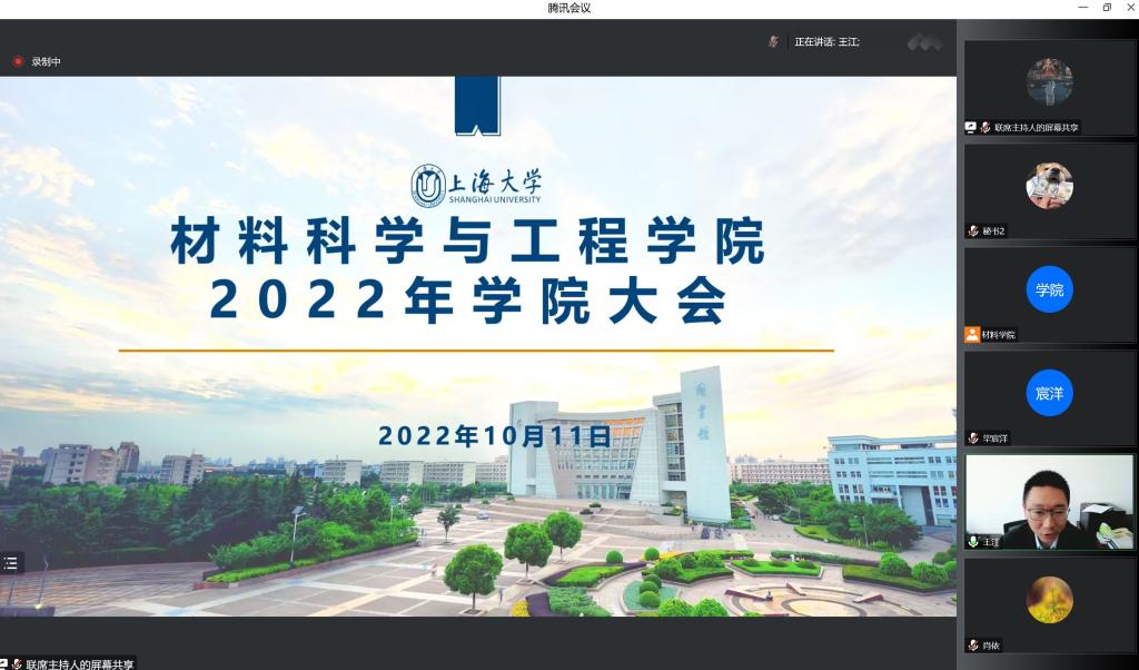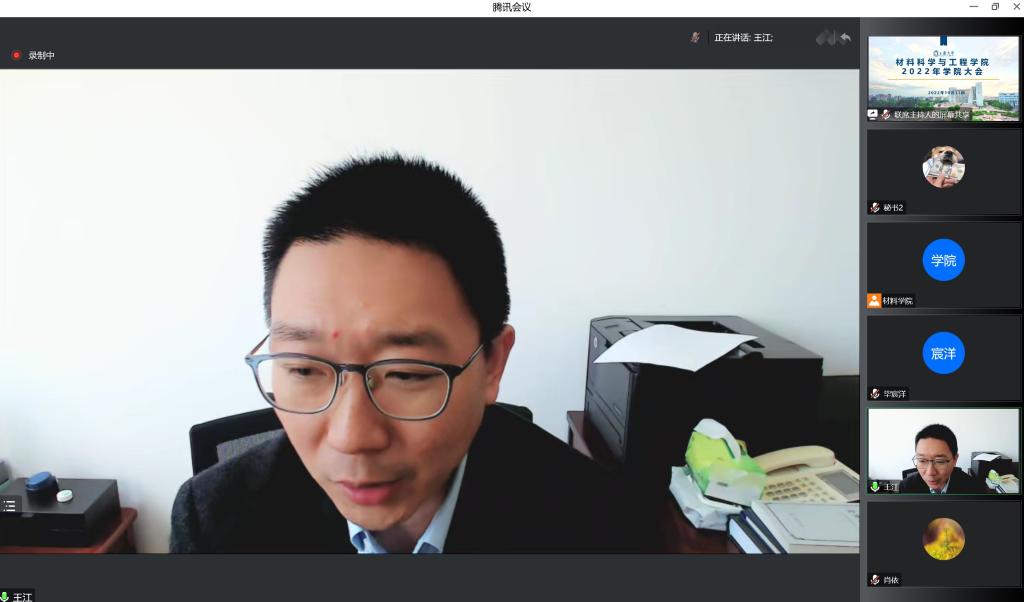 10月11日,材料学院召开2022年学院大会,因疫情防控要求,本次大会采用线上模式,学院领导班子成员及全院教职工参加大会。