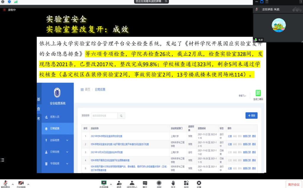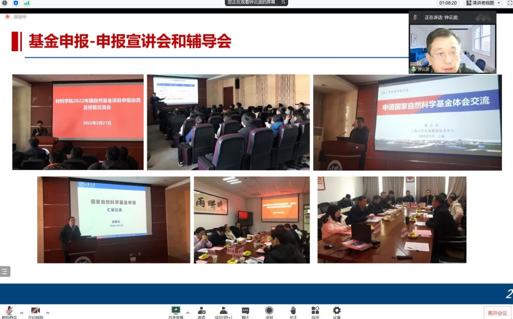 党委副书记、纪委书记刘文庆从党建工作、纪委工作、工会工作、人才工作、青联会工作等方面总结了年初以来的工作情况。党委副书记、副院长祁晶总结了前期疫情防控工作、心理及安全教育工作、就业和招生工作、社会捐赠和校友工作,介绍了学生工作公共服务分、书院制改革情况以及接下来拟开展的重点工作。副院长钟云波从学院科研经费收入、学院高水平论文发表情况、企业合作交流情况、科研合作与交流情况、科研项目和经费等方面对科研工作进行了总结,并对SHMat论坛筹备情况作了介绍。副院长黄健从教学基本情况、教育教学改革、教学注意事项三方面总结了本科教学基本情况,并对后期重点工作进行了展望。副院长朱波对设备、实验室建设、实验安全管理工作进行了总结,并对下阶段工作重点做了介绍,在感谢大家对安全工作的配合和支持的同时,希望全体教师一如既往做好实验室安全工作。副院长李文从招生工作、培养工作、学位工作等方面对研究生教学和外事工作做了总结,介绍了国际青年学者论坛诸侯快讯入口官网材料前沿专场相关工作及后期重点工作。