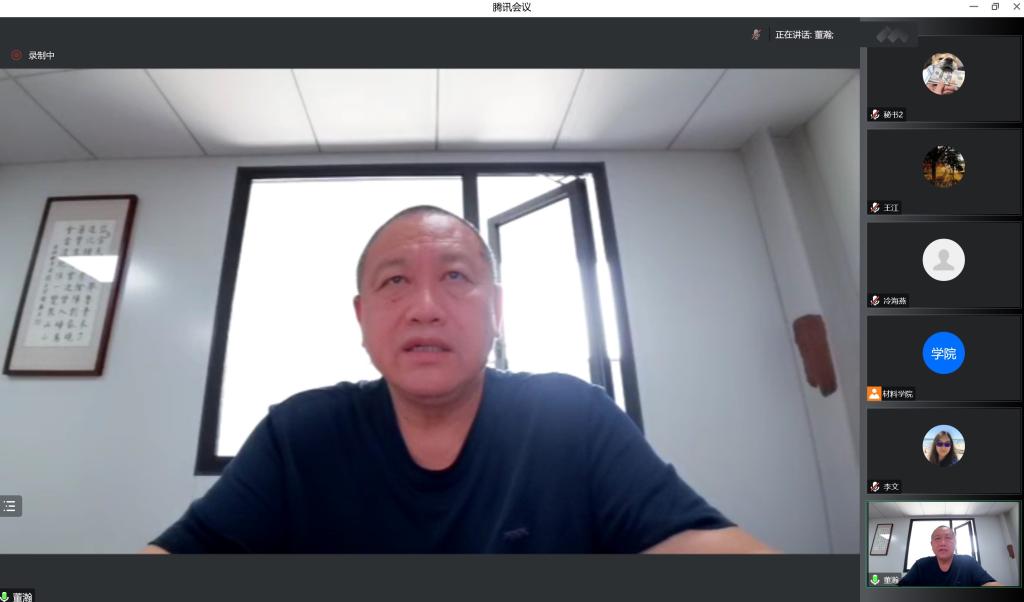 材料学院院长董瀚对学院今年以来取得的成绩表示充分肯定,并对大家做出的努力表示感谢,他指出,要进一步做好学科建设和学院的管理工作,努力完成各项指标任务,全力做好年底冲刺阶段的各项工作,在疫情散发期间,持续加强疫情防范,保障好科研和教学秩序。党委书记王江表示,要切实做好巡察反馈问题整改,通过定期举办政策宣讲,一以贯之坚持公平、公正、公开,在感谢各位老师辛勤付出的同时,希望大家再接再厉,做好疫情防控及下阶段各项工作。