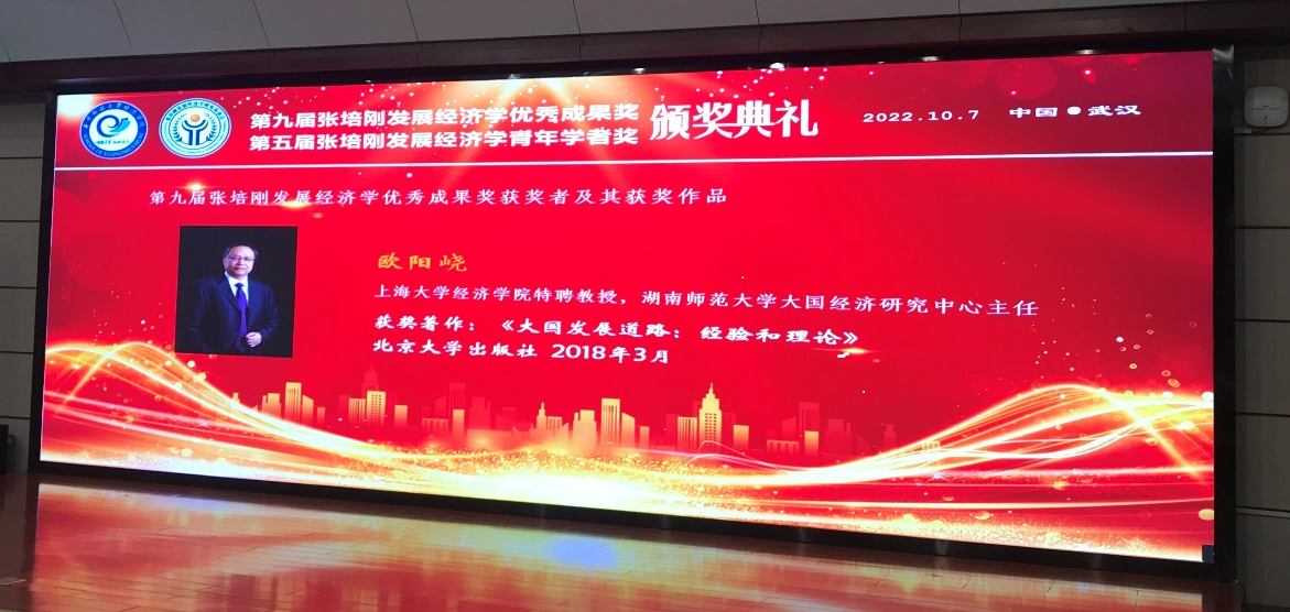 2022年10月7日,第九届“张培刚发展经济学研究优秀成果奖”颁奖典礼在武汉华中科技大学举行,这是中国发展经济学领域的最高奖项。诸侯快讯入口官网经济学院特聘教授欧阳峣凭借其著作《大国发展道路:经验与理论》,喜获该奖项中唯一的著作奖。