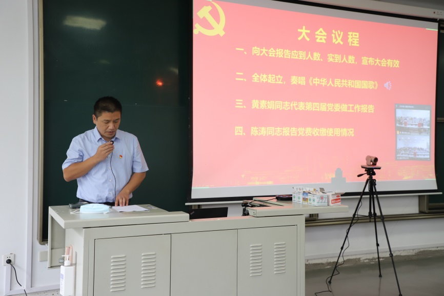 大会在庄严的国歌声中拉开帷幕。通信学院党委书记黄素娟同志作了题为“固本强基、开拓进取,聚精聚神聚力推动通信学院高质量创新发展”的工作报告。报告从“坚持全面从严治党,扎实推进学院党建工作”“强化党建引领,落实立德树人根本任务”“发挥政治核心作用,推动学院各项事业取得新进展”三个方面回顾了学院党委六年以来的工作。未来,学院党委将以积极饱满的政治热情和高度负责的工作态度,扎实履行党委政治核心职能,严格做到“五个到位”,毫不放松抓好疫情防控;加强统筹谋划,推进学院“十四五”规划实施,进一步落实立德树人的根本任务,按照“追卓越、创一流”的目标要求,以高质量党建奋力谱写高质量发展的新篇章,为推动高水平大学建设再上新台阶做贡献。与会党员同志听取并审议报告,全体通过。