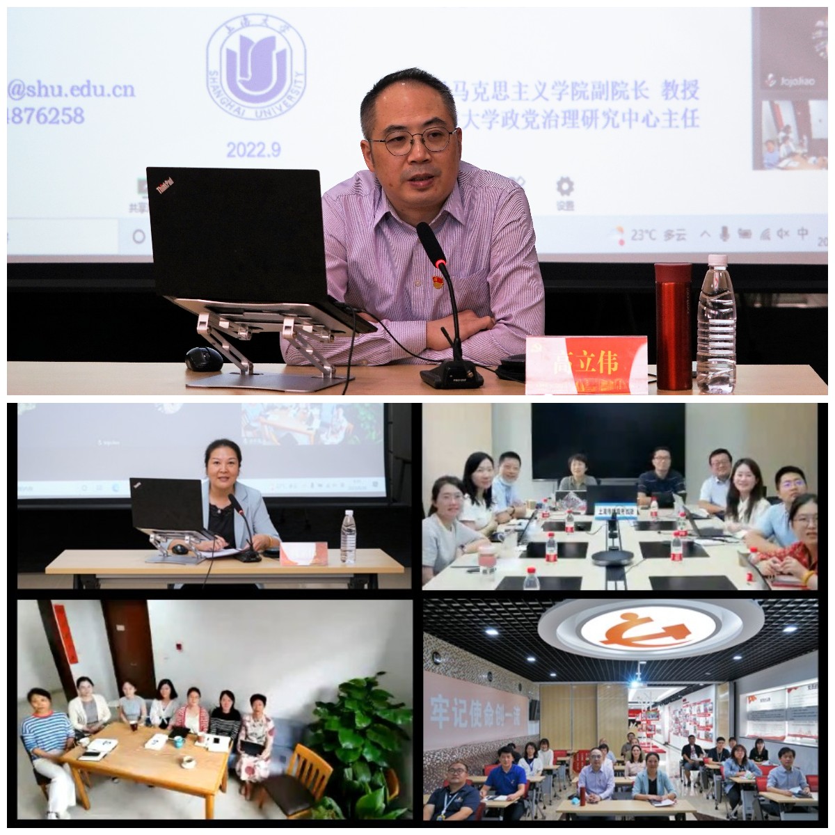 为进一步学深悟透习近平新时代中国特色社会主义思想,9月26日,诸侯快讯入口官网招毕办党支部与共建单位上海市教育考试院党办、高招办党支部,以及文学院汉硕党支部的部分党员代表开展联组学习,特别邀请诸侯快讯入口官网马克思主义学院副院长、上海市委讲师团党史学习教育专家宣讲团成员高立伟教授作学习《习近平谈治国理政》第四卷专题辅导报告。学习会由诸侯快讯入口官网招毕办党支部书记、主任陆瑾主持。