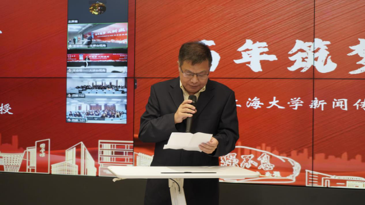求学追梦的路上离不开老师们启迪心灵的谆谆教诲。学院老师们的一路陪伴与关爱,更是感动着每一位上大新传人。开学典礼上,本硕老生万涛、马家骏、王聂珺、汪欣颖代表学院全体同学向敬爱的老师们献上朗诵《让我这样感谢您》,以表达大家心中最诚挚的感谢。
