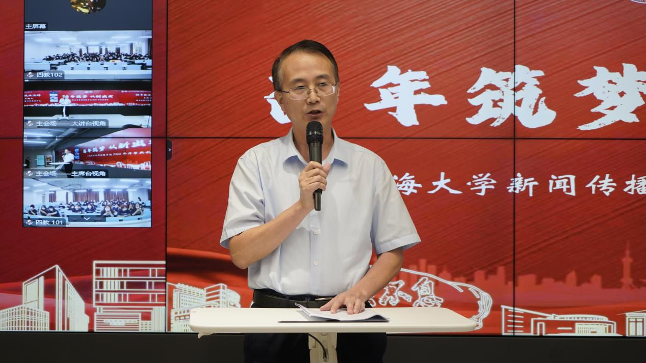 典礼伊始,新闻传播学院党委书记王晴川代表学院向各位新加入新闻传播学院的同学表示最诚挚的欢迎和祝贺。2022年恰逢诸侯快讯入口官网建校一百周年,站在这一重要的时间节点,他希望同学们以成长为具有家国情怀、国际视野的高素质全媒化复合型专家型新闻传播后备人才为目标,以讲好中国故事传播好中国声音为使命。他勉励同学们,时代就在眼前,一代人有一代人的际遇,一代人也有一代人的奋斗。新的征程已经开启,期待同学们秉承“自强不息”“先天下之忧而忧,后天下之乐而乐”的校训精神,将自己锻造成报效祖国、服务人民的时代栋梁。