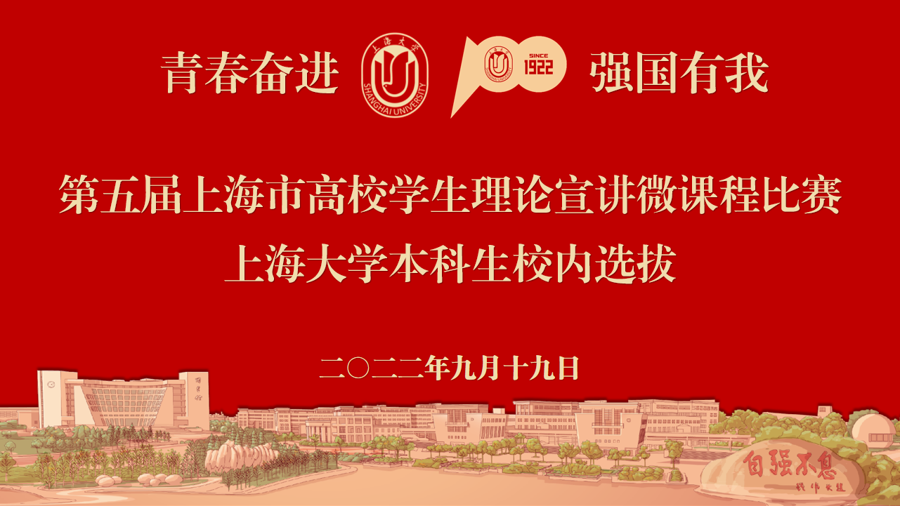 新时代大学生理论宣讲是一种有益尝试,是大学生思想政治教育打通“最后一公里”的实践探索,是学校“三全育人”综合改革试点深入推进的成果彰显。比赛“宣”入人心,发出了强国有我的铿锵誓言,展现了上大本科生学子自强不息的责任担当以及朝气蓬勃的精神面貌,是上大学子青春心向党、奋进新时代的生动写照!(撰稿:孙钟玲)
