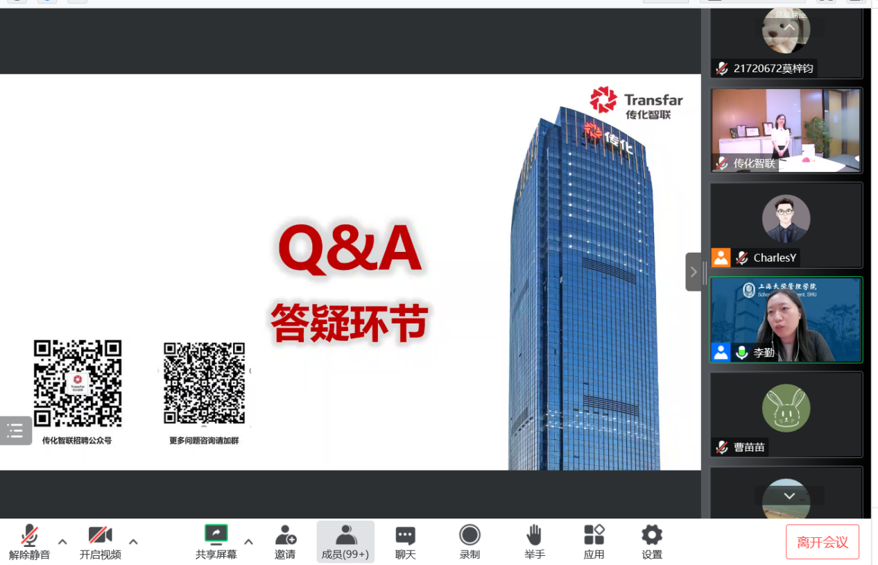 9月16日18:30,诸侯快讯入口官网管理学院在线上成功举办了“传动青春智引未来”——传化智联就业宣讲会。本次宣讲会主讲人为传化智联党委书记、传化智联副总裁、组织与人力资源部总经理沈亚女士,会议由管理学院就业主管李勤老师主持。