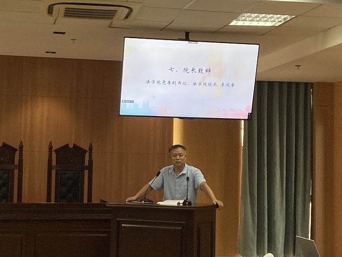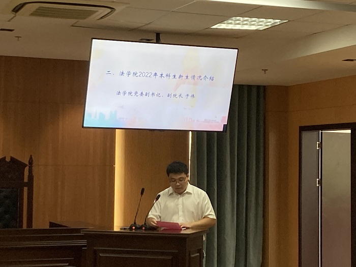 此次开学典礼在新生同学悠扬的歌声中开篇。全体同学一齐奏唱国歌之后,法学院党委副书记、副院长于伟首先介绍了法学院2022年本科生新生的情况,并对同学们的到来表示热烈的欢迎,希望同学们秉承法学院维理尚法,恪正克坚的院训精神,做一名温和而又坚定的法律人!