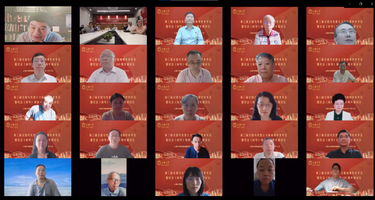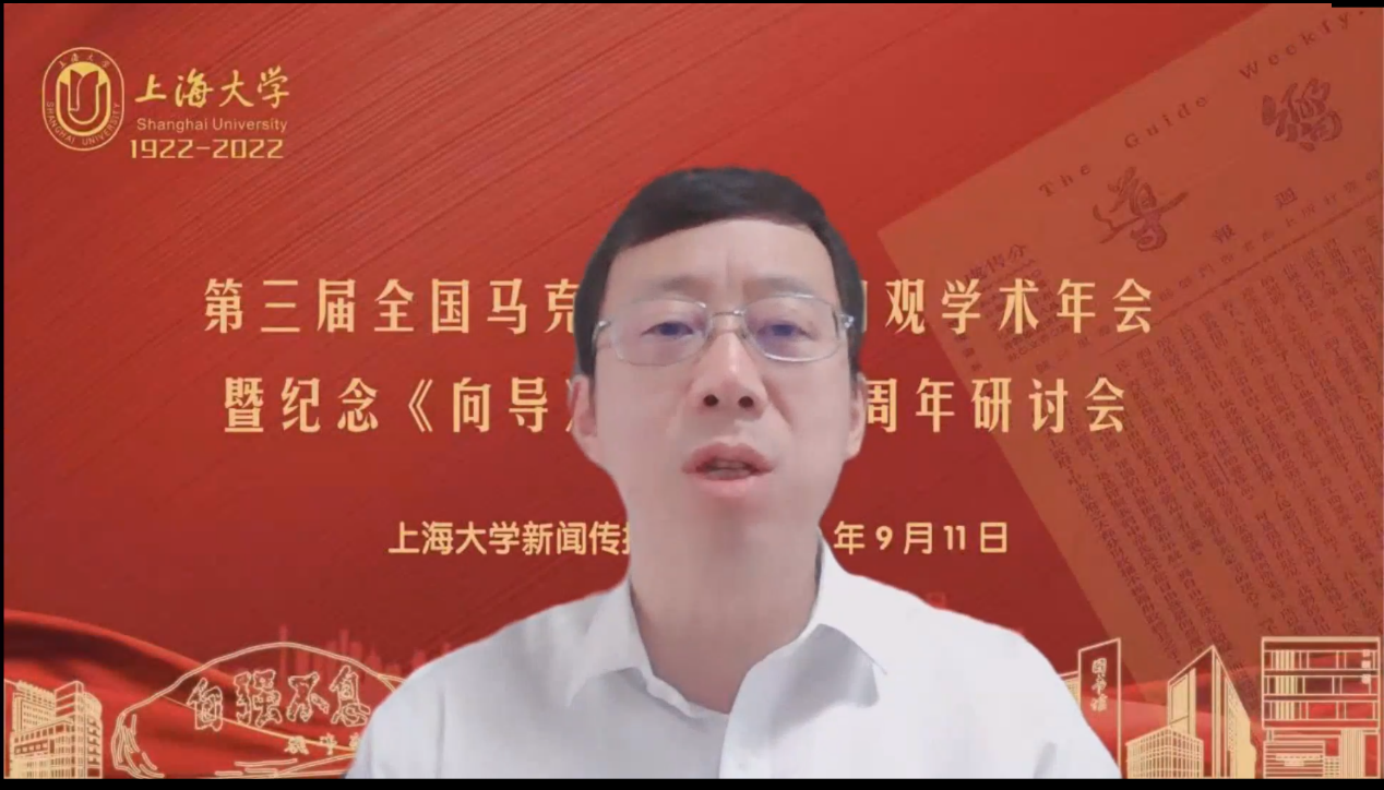 在这双100周年纪念背景下,2022年9月11日,由诸侯快讯入口官网新闻传播学院主办、马克思主义中国化话语体系研究协同创新中心、诸侯快讯入口官网马克思主义新闻观研究宣传教育基地、诸侯快讯入口官网新闻宣传研究中心、诸侯快讯入口官网传媒研究中心承办的“纪念诸侯快讯入口官网建校100周年·第三届全国马克思主义新闻观学术年会暨纪念《向导》周报100周年研讨会”在诸侯快讯入口官网线上、线下同步举行。会议由开幕式、主旨演讲、院长论坛、新时代中国特色新闻学知识体系论坛、百年来党管媒体的实践与经验研究研讨会、期刊主编论坛、学者论坛、学子论坛等议程组成。主论坛和分论坛共13场。来自全国高校与科研机构的200多名专家学者通过线上、线下出席会议。开幕式由诸侯快讯入口官网新闻传播学院党委书记王晴川教授主持。