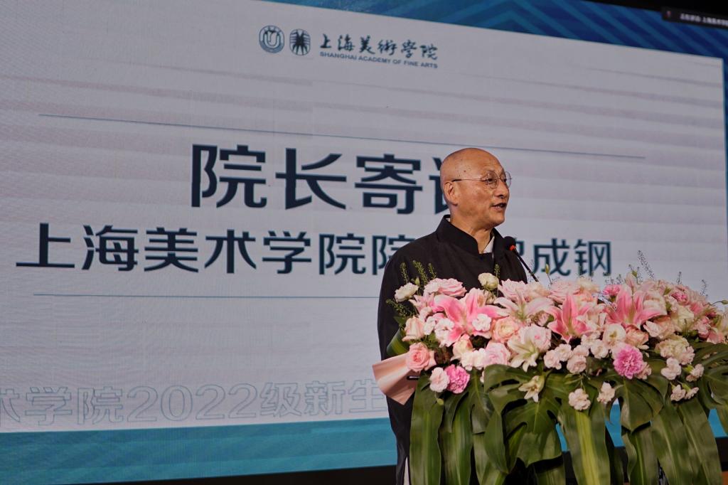 上海美术学院院长曾成钢代表学院向全体新生的到来表示欢迎,他赞赏了同学们面对疫情不怕困难、敢于拼搏的精神,祝贺同学们圆梦上美,踏上人生新征程。