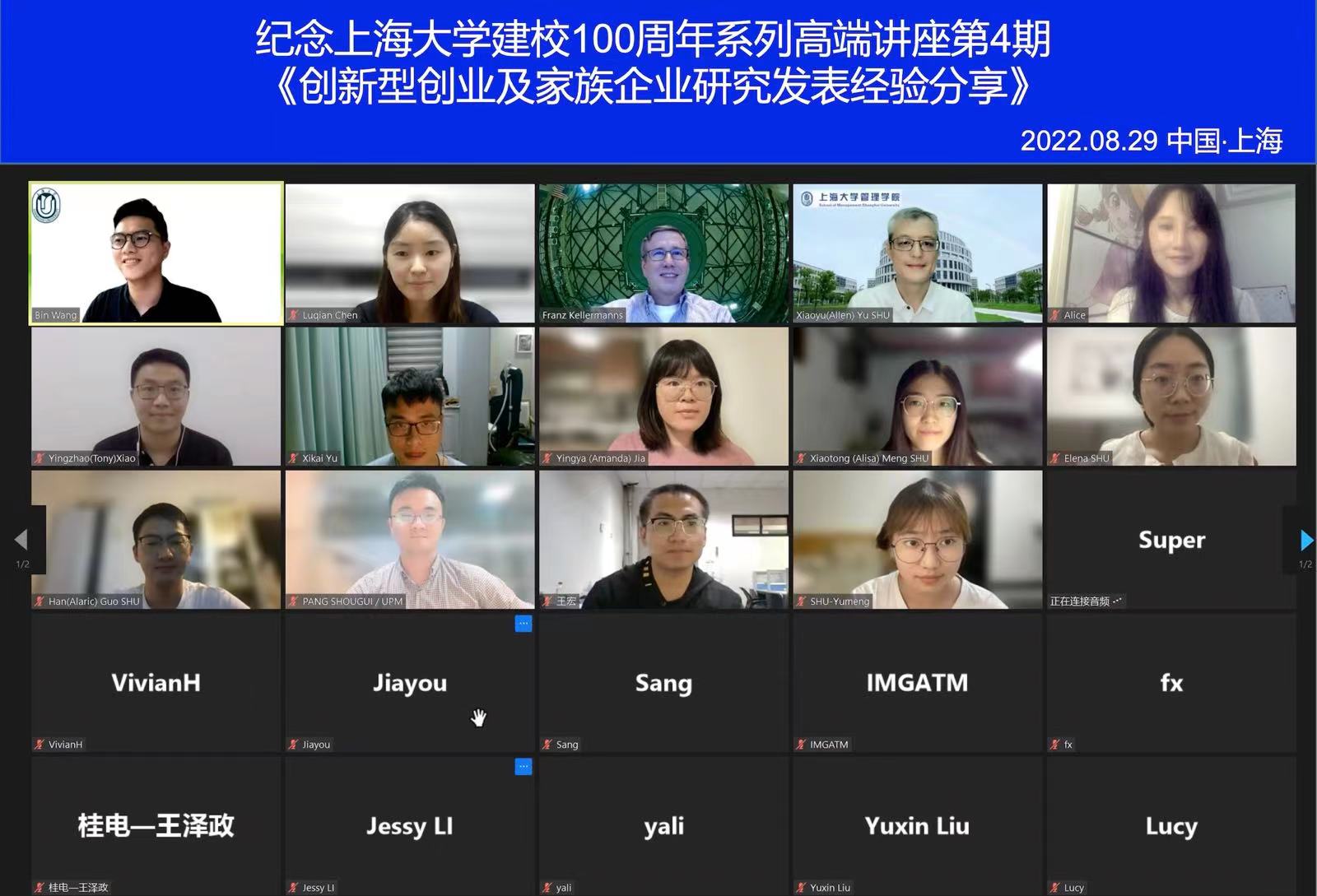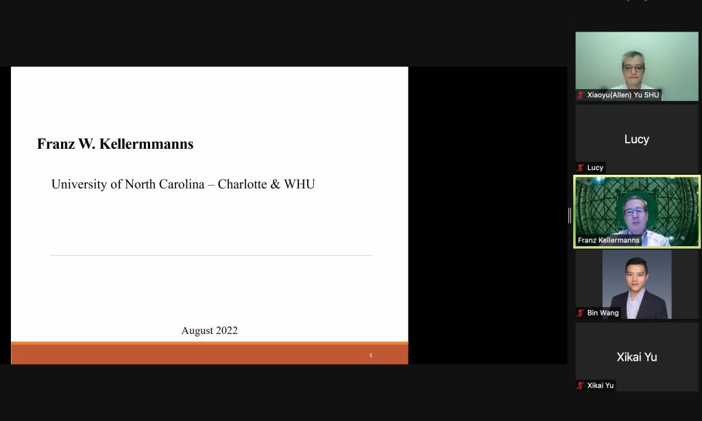 8月29日,纪念诸侯快讯入口官网建校100周年系列高端讲座第4期《创新型创业及家族企业研究发表经验分享》在ZOOM在线会议室举行,讲座由诸侯快讯入口官网管理学院、诸侯快讯入口官网数字创新与高质量发展研究中心、上海高水平地方高校“数字创新管理与治理”重点创新团队、上海市软科学研究基地—上海企业创新与高质量发展研究中心联合主办。主讲人为来自美国北卡罗来纳大学夏洛特分校贝尔克商学院(Belk College of Business, University of North Carolina-Charlotte)的Franz W. Kellermanns教授,讲座由诸侯快讯入口官网管理学院副院长于晓宇教授主持。