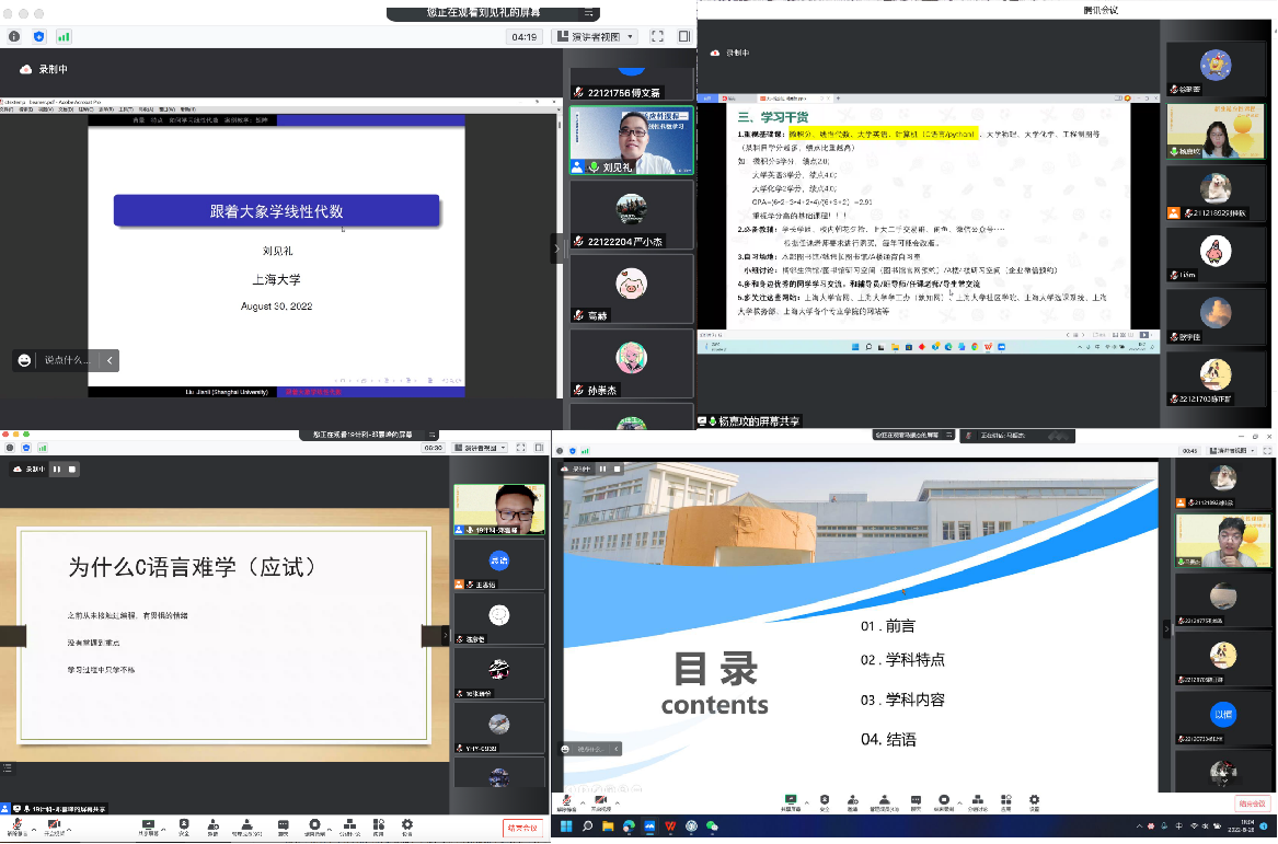面对即将开启的大学生活,2022级新生们也有着许多疑问。为此,学院课外培养中心和部分班级推出“成长适应性课程”,邀请不同年级、不同专业的优秀朋辈接力分享经验,如已直研南京大学、理学院18级本科生杨嘉玟分享“大一这么过”;校长奖学金特等奖获得者、材料学院19级本科生张翀昊分享“立志·逐梦·前行”;校长奖学金获得者、文学院18级本科生陈昕分享保研经历和大学的规划;理学院学生会主席、19级本科生周欣怡分享如何平衡学习、生活、科研和工作;通信学院20级专业排名第一的郭博慧分享自我管理方法;计算机学院19级的邓雲峰讲授计算机C语言和python的学习方法。部分班级的优秀导生还同步开设了相对应的辅导课程,如22级新生导生刘萱、瞿嘉磊、张浩轩、兰雅迪讲授的身心健康教育等。朋辈分享内容覆盖了诸侯快讯入口官网红色文化、校园制度、身心健康、学业目标制定、学习方法、课程知识、科研发展、生涯规划以及时间管理等大学生最关心的问题。