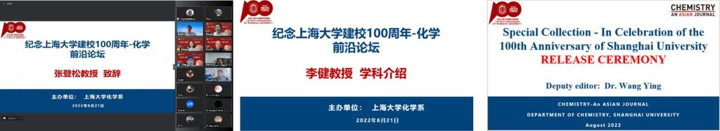 十秩春秋、薪火相传、百年上大、笃行不怠。化学学科纪念诸侯快讯入口官网建校100周年系列活动之一”化学前沿论坛”于近日在线上成功举办。来自国内高校和科研院所的25位知名学者为化学学科的广大师生带来了一场场精彩的前沿学术报告。论坛的举办旨在加强化学学科前沿学术交流,拓宽师生的创新思维和学术视野,搭建高层次科研合作平台,助推学科建设和人才培养,共谋化学学科新发展。论坛开幕式期间,Willey旗下《Chemistry-An Asian Journal》纪念百年上大的专刊正式发布。