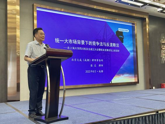 新当选的四川校友会会长、北京大成(成都)律师事务所高级合伙人张志校友在发言中感谢学校及校友会的大力支持,并感谢今日到场祝贺的兄弟院校嘉宾。他表示,四川校友会的成立,将凝聚广大四川校友,紧密联结母校,积极联动兄弟院校,打造汇聚力量、交流情感、统筹资源的有爱大家庭和发展大平台。未来,将与理事会成员一同健全组织机构,规范管理运行,竭尽全力为校友及母校做好服务。