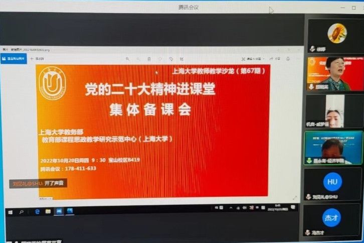 10月16日,中国共产党第二十次全国代表大会正式开幕。为第一时间把党的二十大精神融入课堂,10月20日上午,诸侯快讯入口官网教务部、教育部课程思政教学研究示范中心(诸侯快讯入口官网)组织开展了“党的二十大精神进课堂集体备课会”暨第67期教师教学沙龙。 本期备课会由上海高校思政课名师工作室主持人顾晓英教授担任主持,思政课教师代表、课程思政各类教改课程负责人及成员、学院教学管理人员、教务部现教中心支部党员,来自井冈山大学等党史类课程联盟校的教师等80多名教师参与线上线下研讨。与会教师一致认为,党的二十大报告是一篇光辉的马克思主义纲领性文献,思想深邃、立意高远、内涵丰富,将认真学习领会党的二十大精神,趁热打铁、迅速安排,在新的一周开始之际将党的二十大精神同思政课有机结合,及时融入课程思政建设,尽快更新教学内容、创新教学方法,让党的二十大精神“第一时间”进课堂。