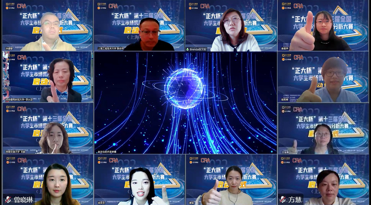 嘉宾与参赛选手共同观看了第13届比赛宣传片,详细地了解了竞赛安排、规则和选题介绍。主持人邀请在场的领导和嘉宾们举起手指指向屏幕,为市调大赛注入正能量,伴随启动视频,“正大杯”第13届全国大学生市场调查与分析大赛上海赛区正式启动。与会人员和3200多名观众共同见证了这一重要时刻。(撰稿:夏瑶)