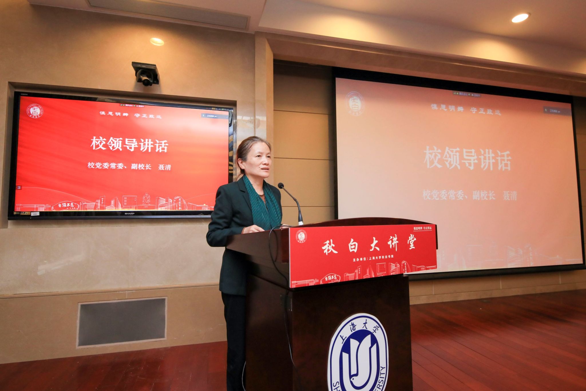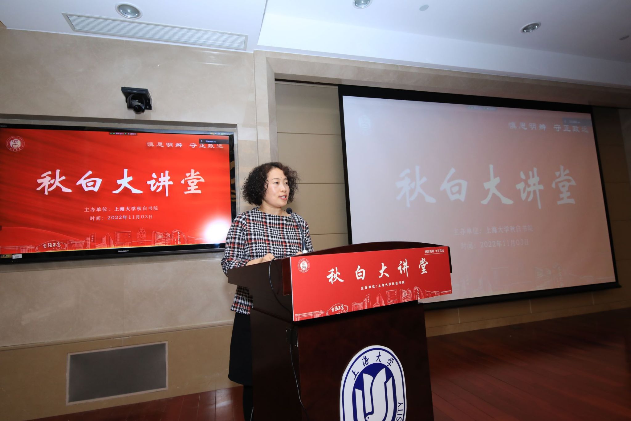 校党委常委、副校长聂清对秋白学子给予了期许和殷殷嘱托。聂校长希望同学们将李晓云女士的寄语转化为奋发向上的动力,赓续百年上大红色精神血脉,并且强调了学习永无止境,同学们要学以致用、知行合一,带着个人的思考去深入阅读。聂校长阐释了秋白书院的深刻内涵意蕴,新时代秋白学子应该努力兼具内敛与外张之力,读经典好书,涵育人文素养,承载传承瞿秋白先辈的期望,立足当代、面向未来,努力成为有思想、有智慧、有能力,能够堪当民族复兴重任的时代新人。