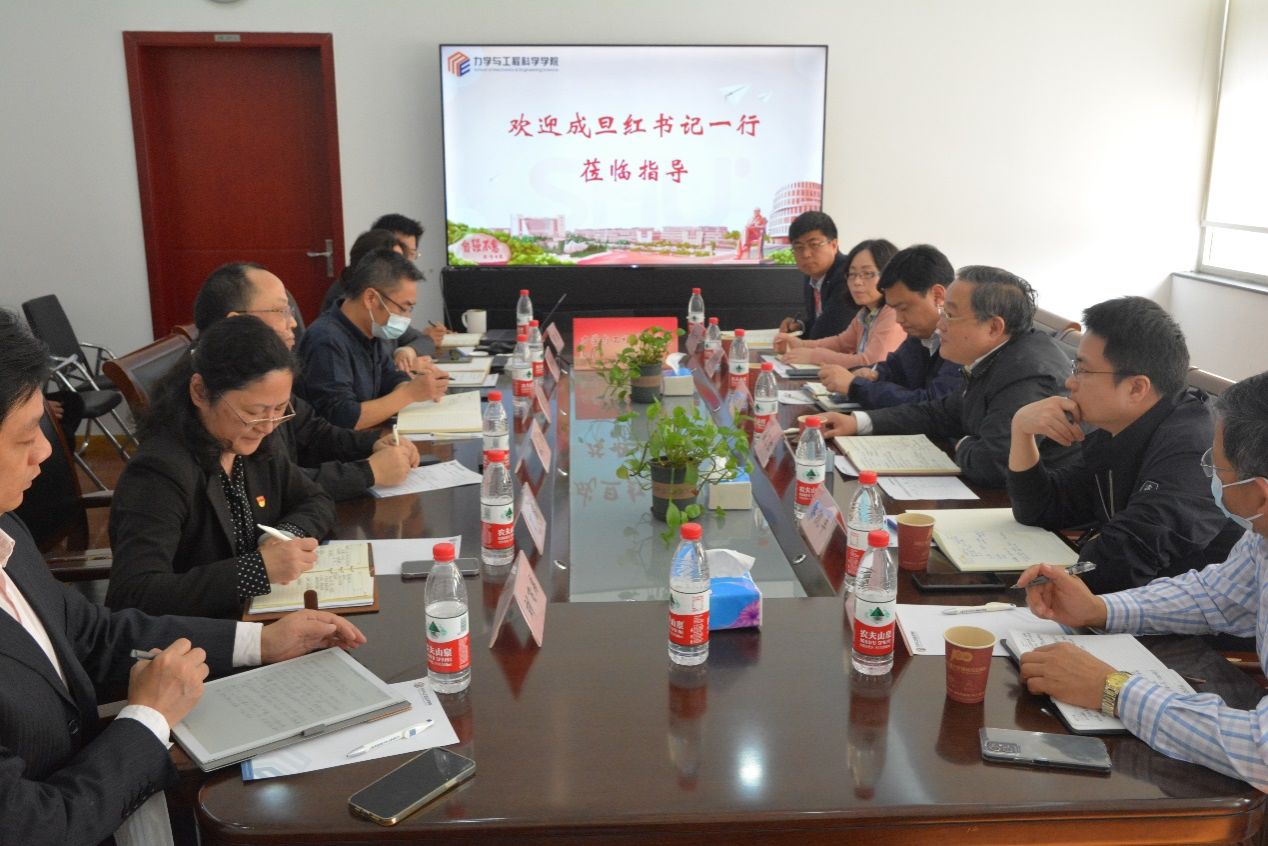 11月10日上午,校党委书记成旦红一行赴力学与工程科学学院调研指导工作。校党委书记成旦红,校党委常委、宣传部部长胡大伟,校党政办主任秦凯丰,校党委巡察办常务副主任崔海霞,校党政办副主任凌长臣,校组织人事部组织处副处长张云中,力学与工程科学学院全体党政领导班子、系所骨干、教工支部书记出席了本次会议。