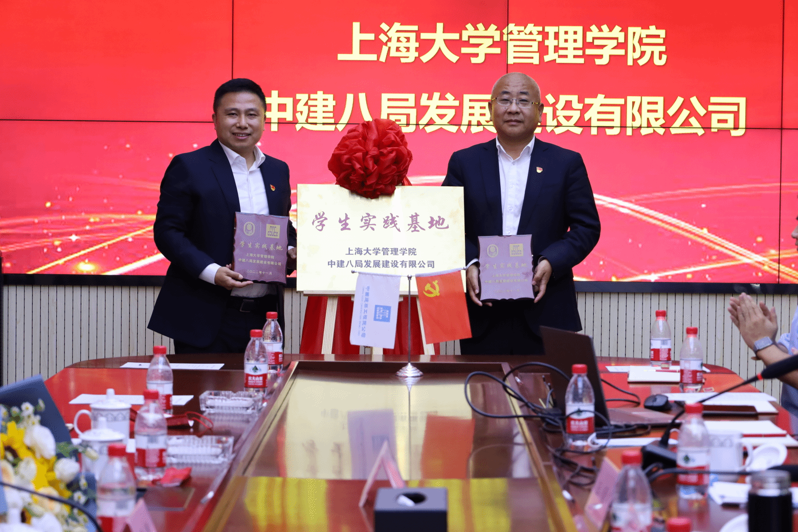 活动中,双方共同观看学习了《百年上大 红色传承》短片、中建八局发展建设公司宣传片、《百年党史“潮”青年》纪录片选集之《党和人民的骆驼》和《第一军规》,感受上大红色基因、中建八局铁军精神,学习任弼时同志的骆驼精神及人民军队“三大纪律八项注意”的“第一军规”本色。
