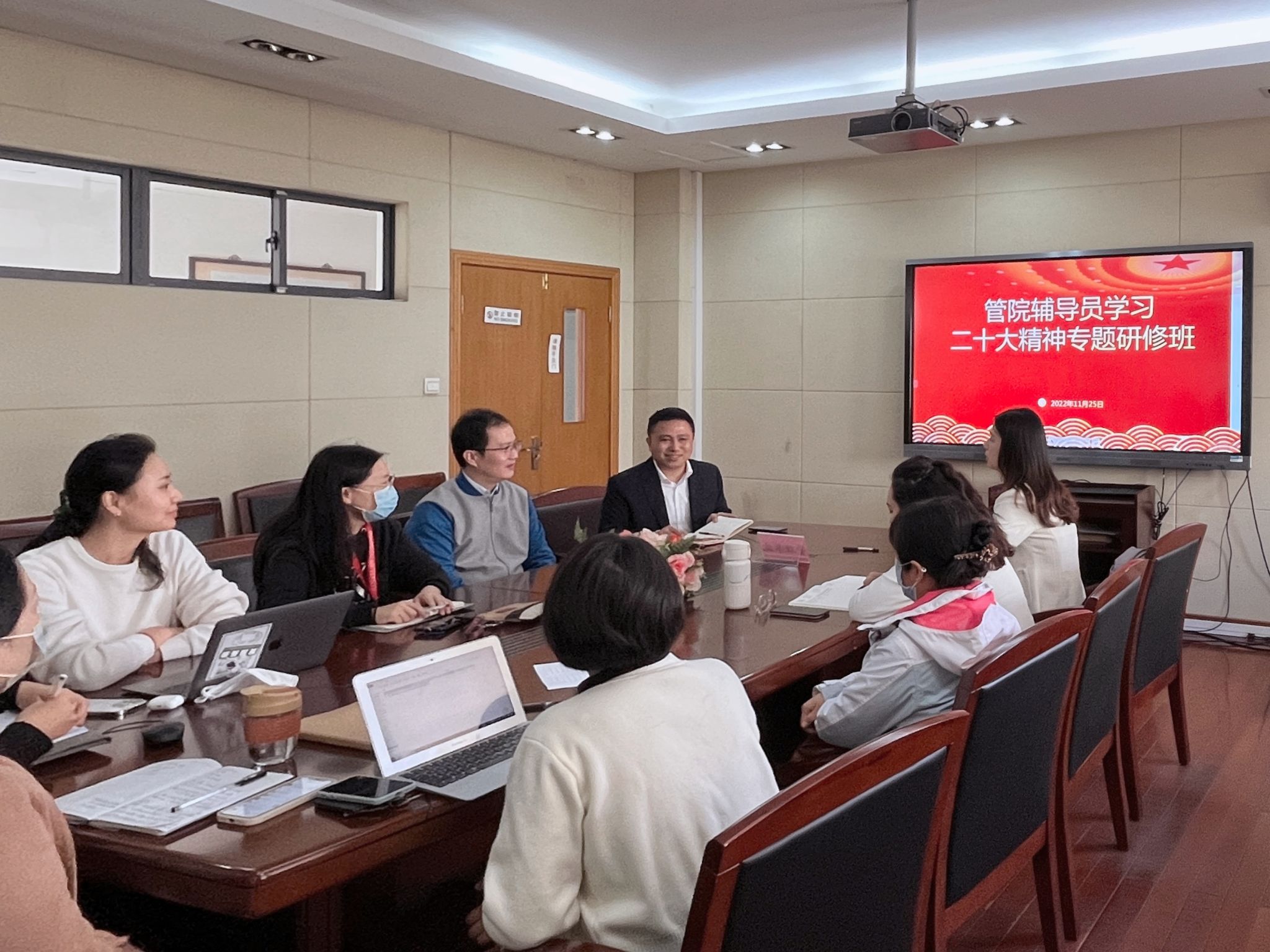 赵老师的专题报告深受欢迎,催人奋进,参会的辅导员老师们逐一谈了学习体会,结合学生思想引导、党团工作、学生二十大宣讲、课题申报等方面与赵老师进行了充分交流,大家均表示受益匪浅。