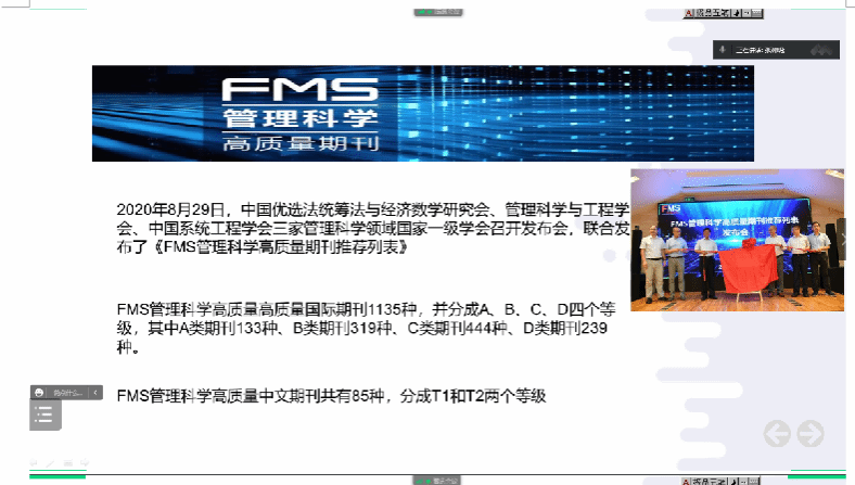 接着,张济明老师结合管理学院师生论文发表实际,专门针对Web of Science(WOS)收录的100本运筹与管理类期刊进行了深入分析,包括SCIE与ESCI收录期刊的数量比例、SCIE收录期刊的国别分布,“运筹与管理”领域近五年发文总量和机构分布及2021年影响因子Top 10期刊等。同时,对FMS管理科学高质量期刊起源和分类进行了总结,对Management Science、Operations Research、Manufacturing & Service Operations Management、Production and Operations Management等“运筹与管理”领域FMS顶级期刊进行了详细介绍。