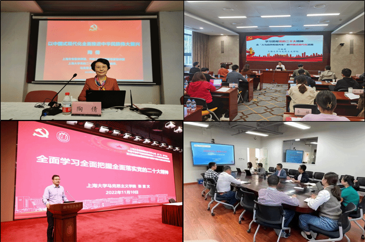 为发挥马克思主义理论学科对其他学科的引领作用,深入学习研究二十大报告,深刻领会党的二十大精神,不断聚焦哲学社会科学的研究方向和学科建设方向,马克思主义学院和科研管理部文科处联合设立“学习二十大报告”专项研究课题,面向全校老师共立项了38项聚焦二十大精神研究阐释的课题项目。学院还组织动员全院教师积极申报教育部哲学社会科学研究专项(党的二十大精神研究)。此外,在上海市“马克思主义中国化新的飞跃与全面建设社会主义现代化国家”理论征文活动中,学院徐海峰教授获最佳论文奖(全市共12篇),青年教师宋哲仁获优秀论文奖。