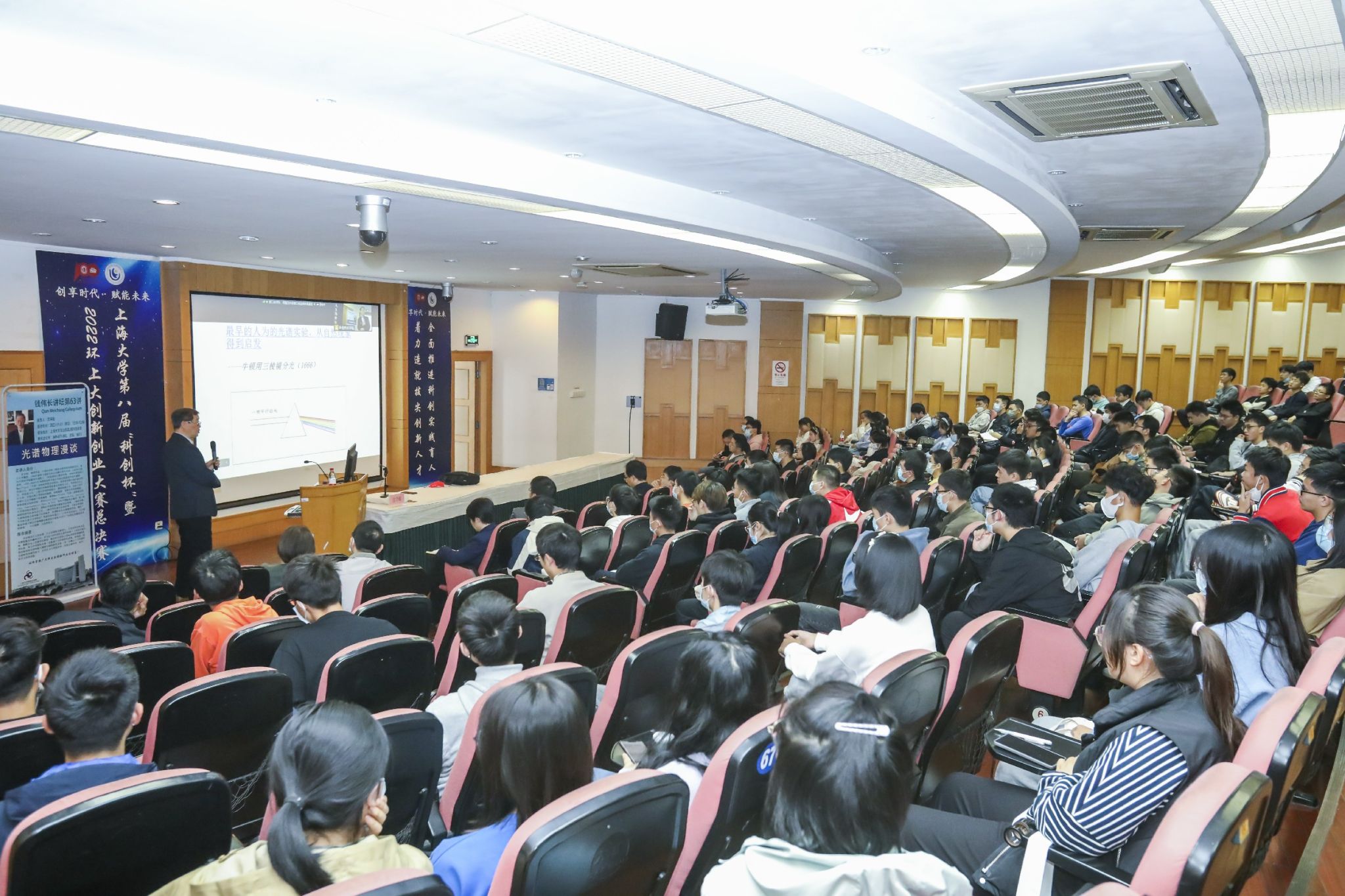 最后,沈院士生动地讲述了光谱研究过程中的有趣故事:电子混沌运动、室温下准粒子波色。沈院士将中国神话中的“混沌”与科学中的“混沌”现象作对比,通过列举蝴蝶效应为师生们形象阐明了“混沌”的含义,生动有趣地讲解不仅使同学们开阔了眼界,也激发了大家的好奇心和探究欲。
