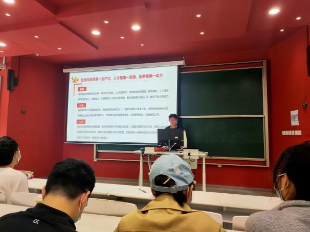 20级邹奕丰同学面向全体本科生开展“学习向未来”党的二十大精神专题朋辈宣讲。邹奕丰同学从“二十大的主题及意义”“聚焦科技创新”“学院理论实践成果”三个部分深入剖析党的二十大精神内核及青年未来的使命担当。