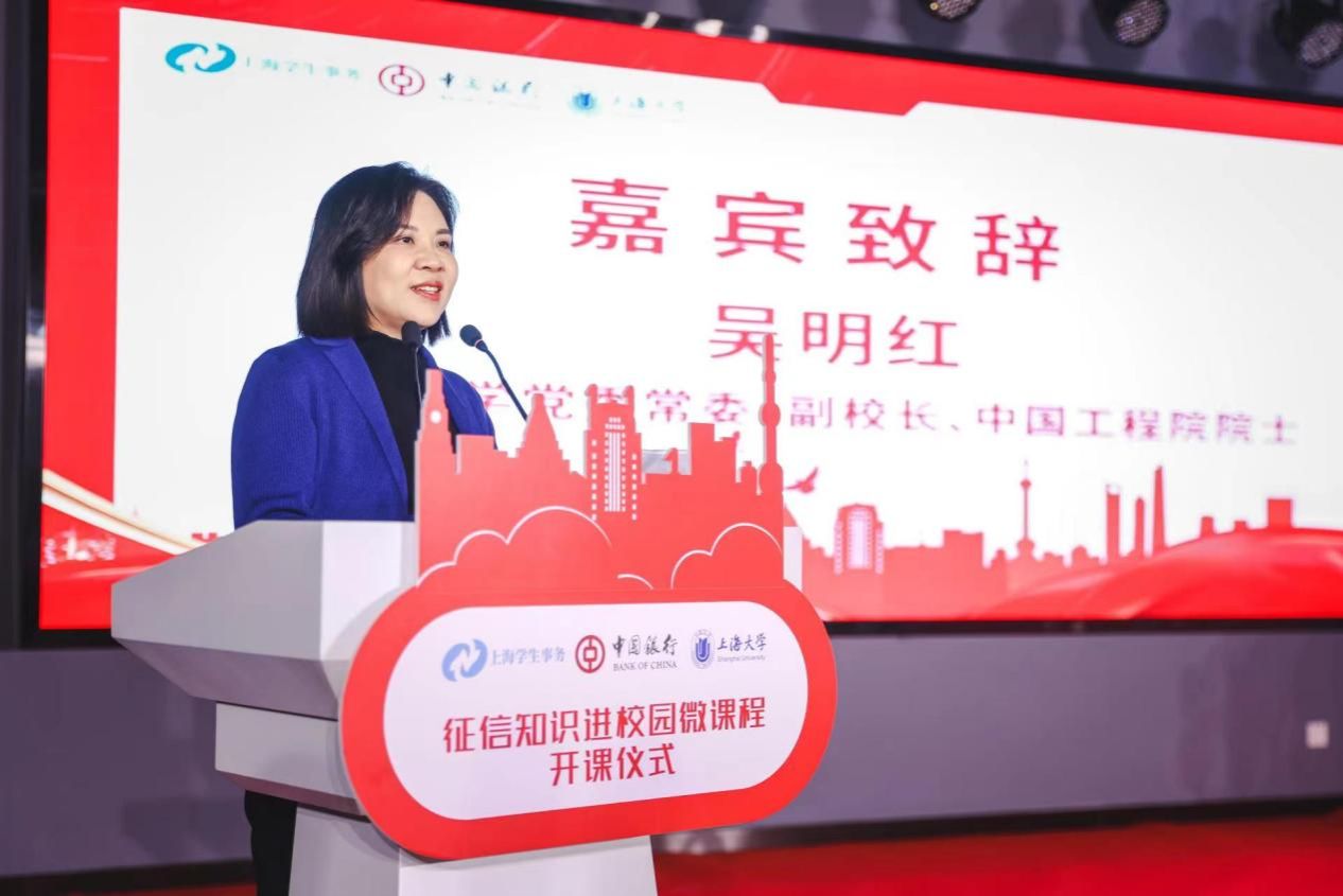 上海市教育委员会一级调研员赵靖茹进行致辞,她高度肯定了此次微课程开展的形式与意义,希望各方继续通力合作,发挥规模效应,在高校学生中形成“学征信、懂征信”的浓厚氛围,使广大高校学子树立正确的人生观、价值观,培育崇尚诚信、践行诚信的良好风尚。