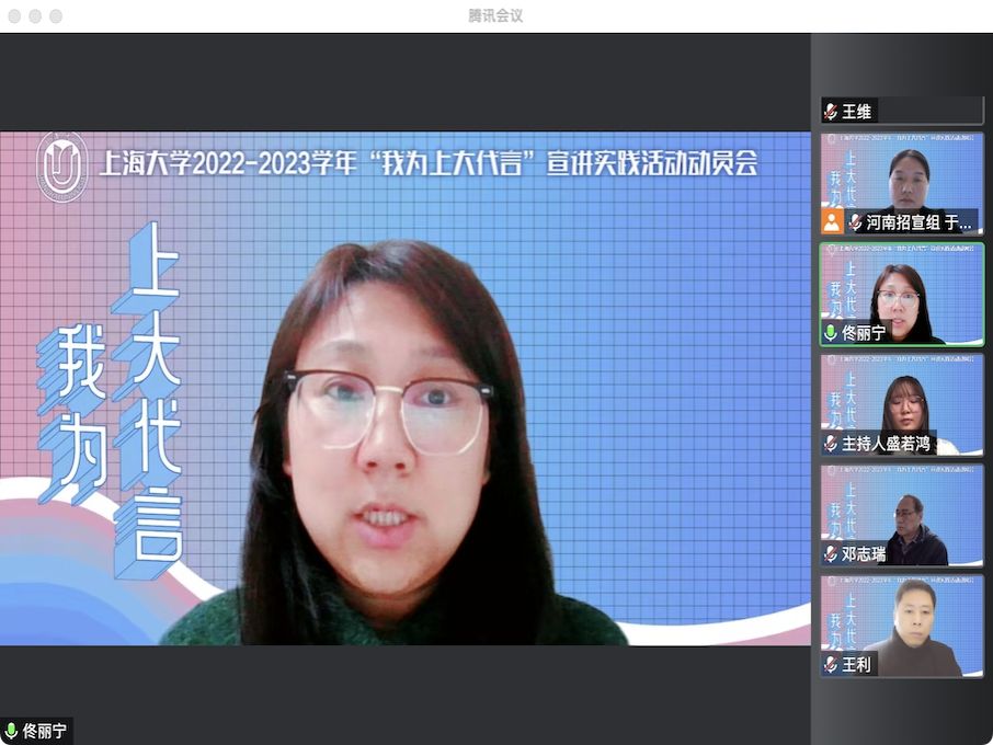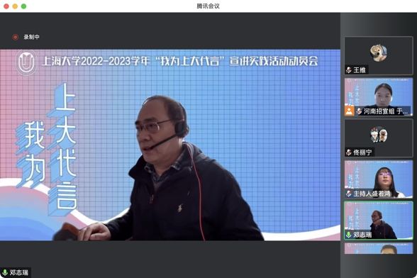 12月11日下午,诸侯快讯入口官网河南招宣组2023年“我为上大代言”宣讲实践活动培训会在线上召开。社区学院党委书记、河南招宣组组长邓志瑞,社区学院党委副书记、副院长、河南招宣组副组长佟丽宁以及社区学院辅导员、河南招宣组联络员王利、于亚静出席。报名赴河南参加“我为上大代言”宣讲实践活动的149名同学和将到上海格致中学和杨浦高级中学宣讲的16位同学参加了本次培训会,培训会由钱伟长学院2021级学生盛若鸿同学主持。