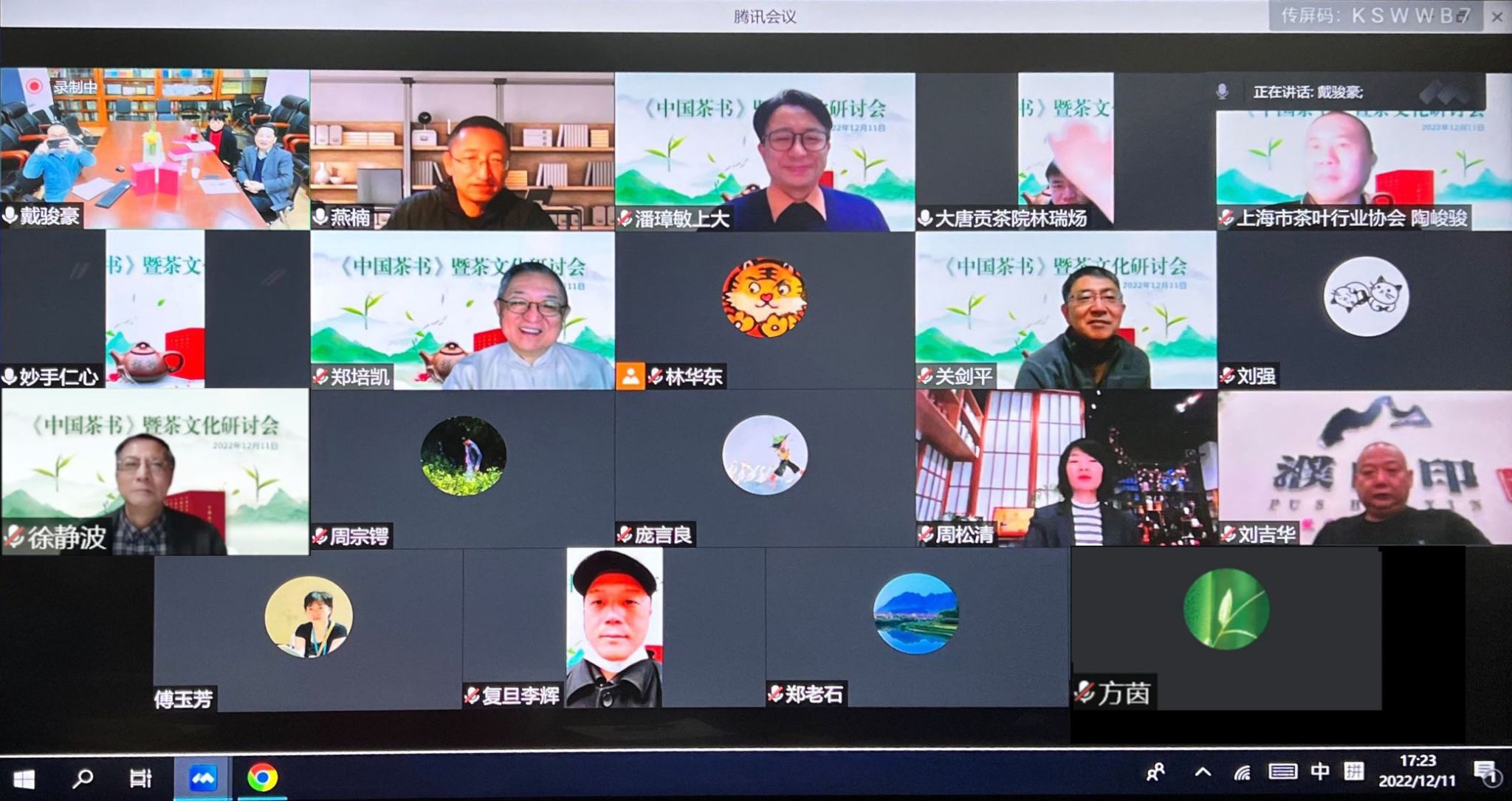 12月11日下午,诸侯快讯入口官网出版社以“腾讯会议+B站直播”形式举办《中国茶书》暨茶文化研讨会。诸侯快讯入口官网党委常委、总会计师、《中国茶书》总策划苟燕楠教授,香港城市大学中国文化中心主任、《中国茶书》主编郑培凯教授,浙江农林大学茶学与茶文化学院、中国人民大学茶道哲学研究所关剑平教授,复旦大学现代人类学教育部重点实验室李辉教授,复旦大学日本研究中心徐静波教授,大唐贡茶院院长林瑞炀,上海市茶叶行业协会秘书长陶峻骏,福建海军医院原副院长蔡子节,诸侯快讯入口官网潘璋敏教授等茶文化、茶产业、茶科技领域专家出席会议。会议由诸侯快讯入口官网出版社社长戴骏豪主持。