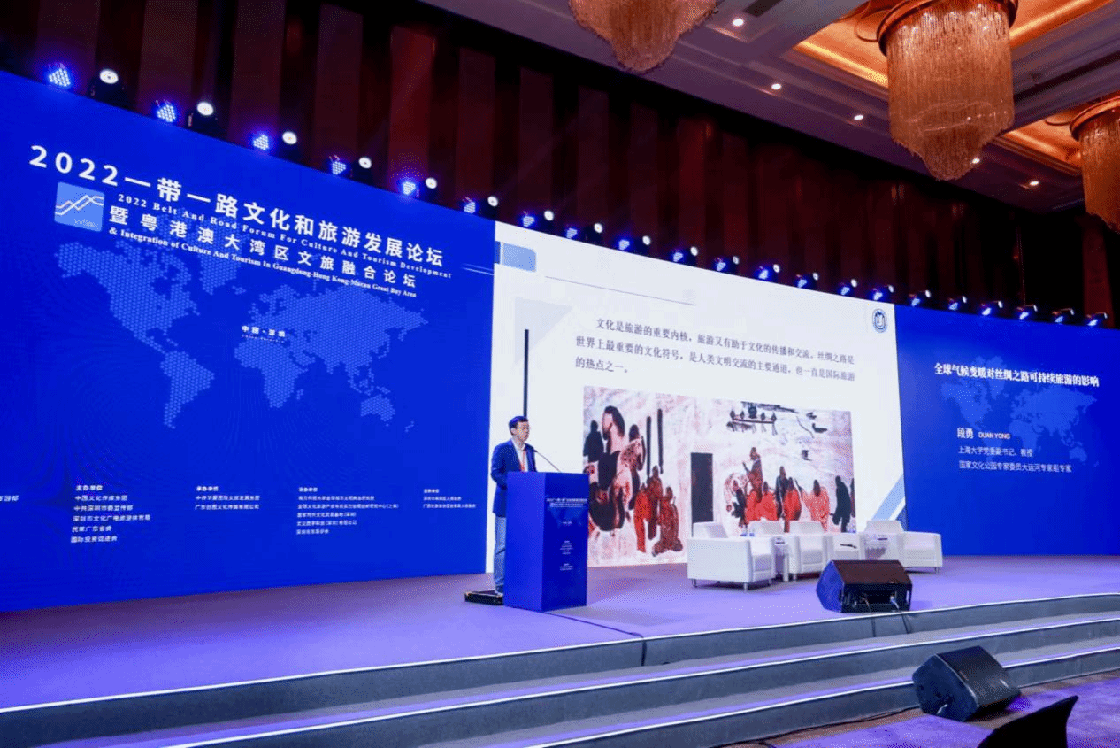 12月19日,2022年“一带一路”文化和旅游发展论坛暨粤港澳大湾区文旅融合论坛在深圳大中华喜来登酒店举行,十二届全国政协副主席齐续春等致辞,我校党委副书记段勇教授应邀出席。