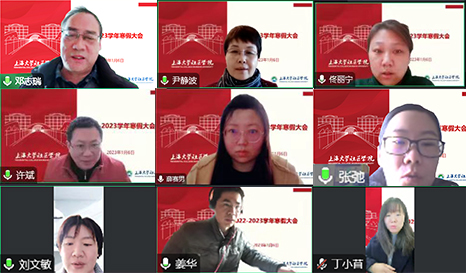 会议伊始,学院学工组组长刘文敏、姜华、丁小苜分别交流了近期学生的离校和留沪情况、线上第二课堂以及寒假的各类活动安排等;学院课外培养中心张弛老师介绍了学院寒假线上课程、学长导学项目以及学业成长指南等;学院团委副书记薛赛男介绍了寒假期间的基础团务、上海市团代会候选人推荐、年味活动和创新项目检查等相关工作。