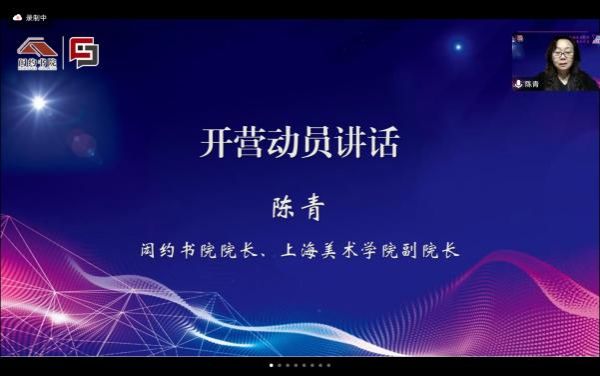 此后,闳约书院院长、上海美术学院副院长陈青进行开营动员讲话。陈院长认为“挑战杯”竞赛是同学展示自己的良好平台,参与竞赛可以激发同学创作灵感,生产有价值内容。此外,训练营是一个提升竞争力的重要途径,同学们在竞赛中不仅要有斗志,还要有智慧。她希望同学们能够通过这次系统地学习获得有价值的能力,培养个人创新力,最终取得好成绩,收获成长。