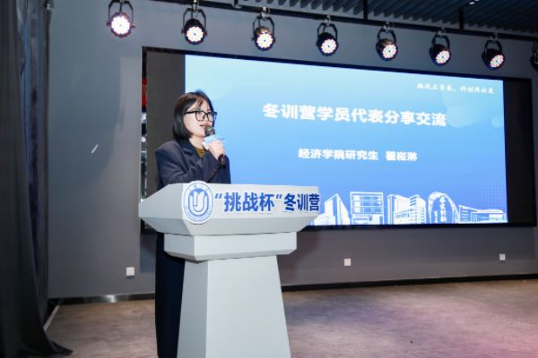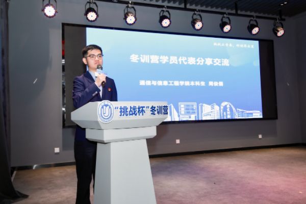 通信与信息工程学院本科生周俊儒同学和经济学院研究生翟崧淋同学分别代表冬训营理科组和文科组营员发言。他们表示,冬训营提供了丰富的资源和精准的指导,既有干货满满的培训会,也有认真严肃的模拟答辩。在这个学习交流的平台上,他们结识了志同道合的朋友,也找到了优化创新项目的方法,更是在一次次思想碰撞中坚定了不惧困难的挑战精神和勤奋严谨的学习态度。他们也将在即将到来的第十八届“挑战杯”竞赛中奋力一搏。
