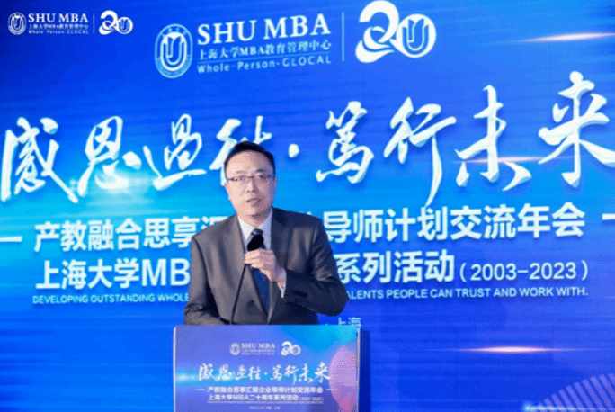 MBA的人才培养离不开企业和社会的参与,上大MBA的产教融合致力于打造一个多维度的导师体系,包括企业导师、产业导师、创业导师、职业发展导师和行业协会共建导师等。他强调,这是一个多向互动的共赢生态。来自各行各业的导师,不仅可以与学员教学相长,也可以与学院、教授,以及其他企业导师,加强互动和交流。不仅贡献教育,同时也对自身企业的人才发现、招聘、品牌建设、价值重塑等带来正向影响和机会,真正地深化产教融合。