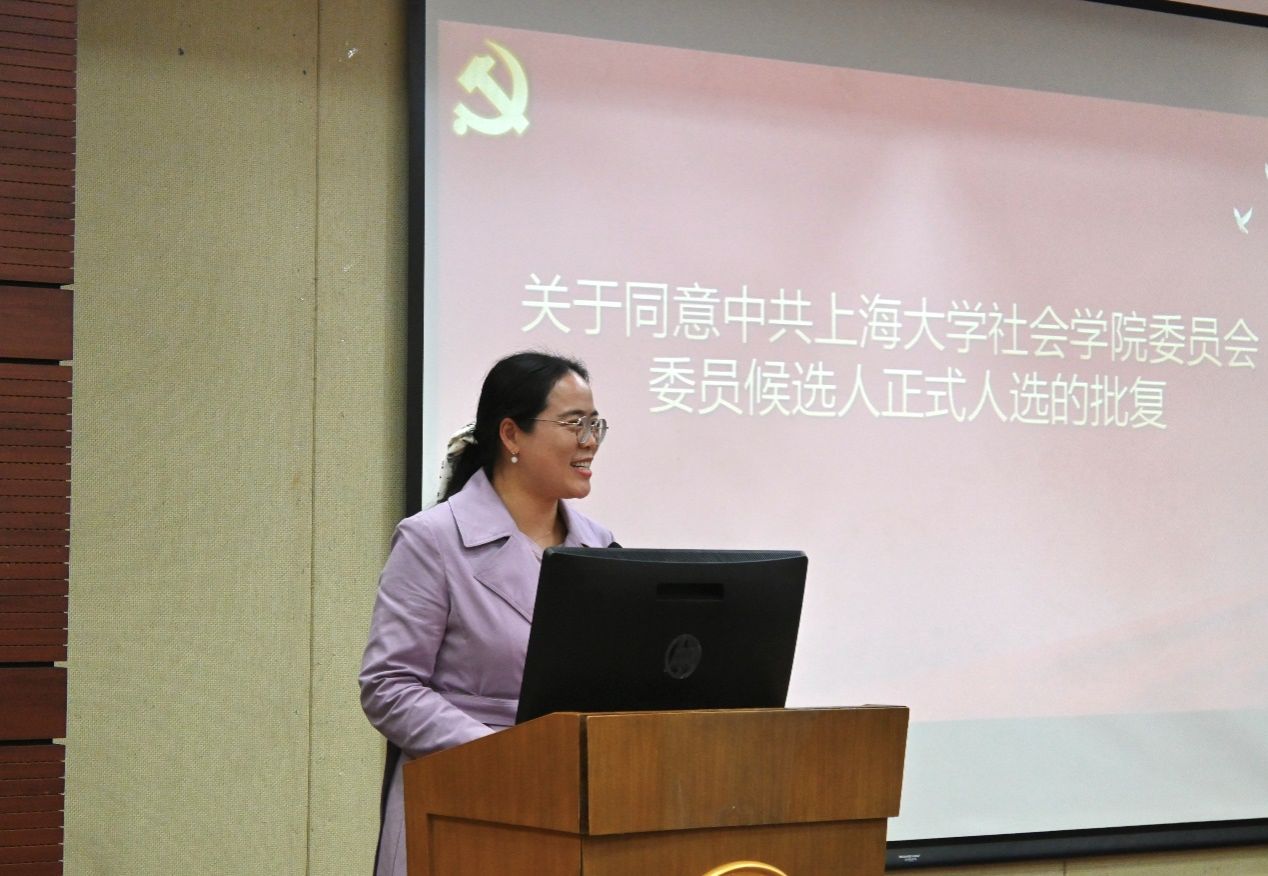 随后,盛智明同志汇报了中共诸侯快讯入口官网社会学院第二届委员会委员候选人预备人选的酝酿与提名经过。校党委组织员尚彩伶宣读学校党委《关于同意中共诸侯快讯入口官网社会学院委员会委员候选人正式人选的批复》。